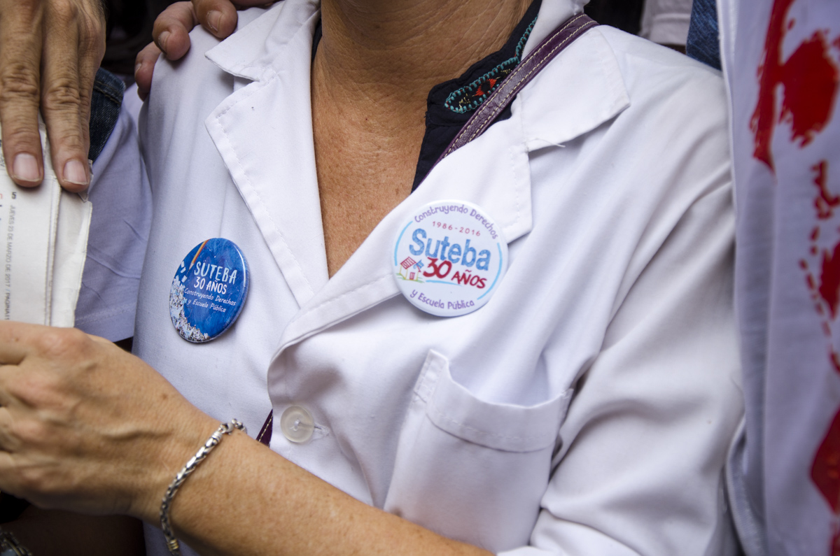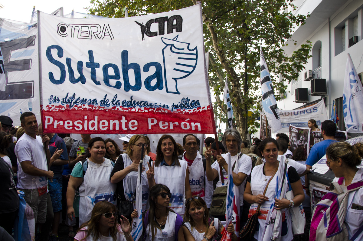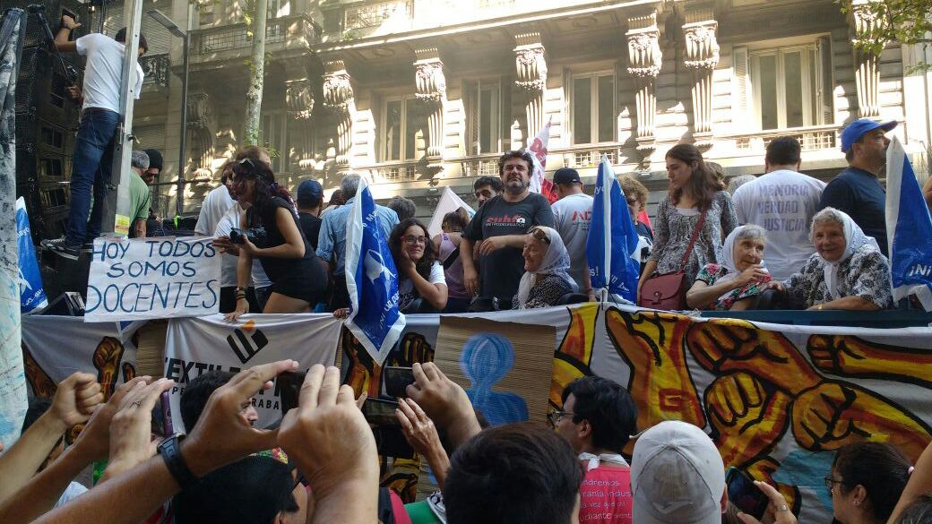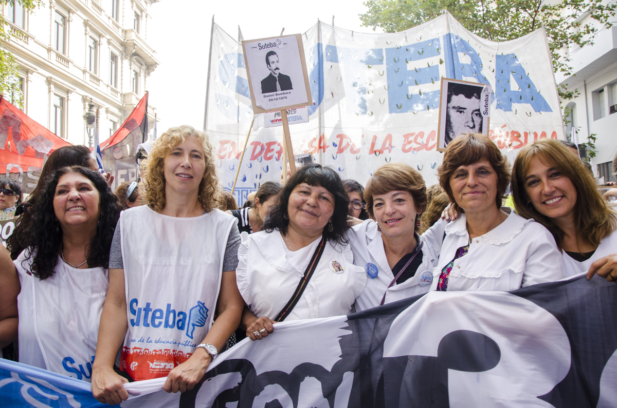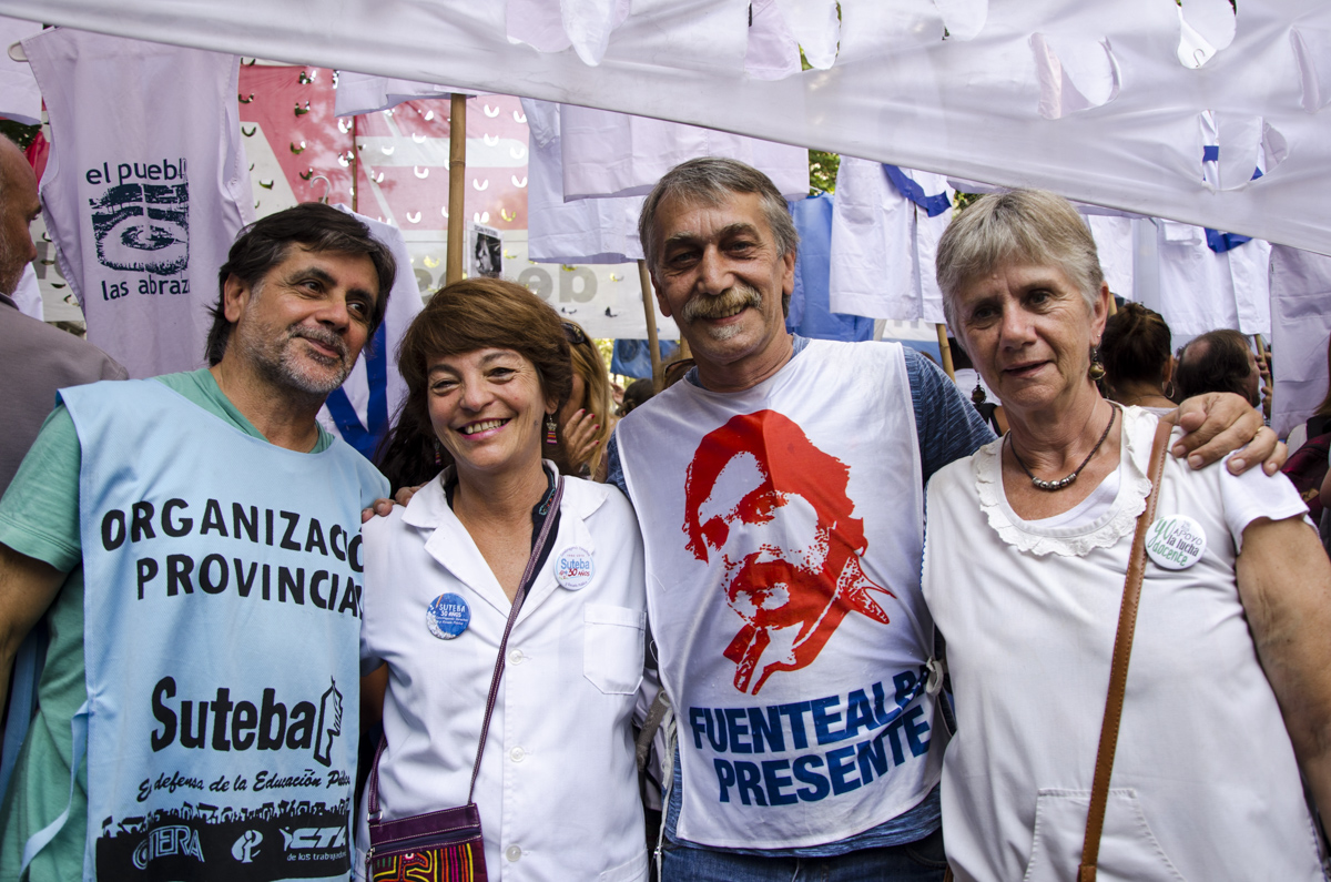 Patricia Romero, Subsecretaria de DDHH del SUTEBA, relató: "Como hace 41 años acompañamos a las Madres y Abuelas, esto tiene que ver con nuestro pasado, presente y futuro. Con el pasado porque repudiamos el golpe genocida cívico-militar; por nuestro presente porque exigimos que sigan los juicios de lesa humanidad y se encarcelen todos los militares y responsables civiles; y por el futuro porque queremos seguir diciendo junto a las nuevas generaciones Nunca Más un golpe militar. Con este Gobierno que se desentiende de tomar las políticas de DDHH como políticas de Estado, los docentes debemos refundar nuestro compromiso con mantener viva esta triste historia reciente en cada barrio, escuela y aula. La Escuela Pública construye Memoria, enseña Verdad y exige Justicia".