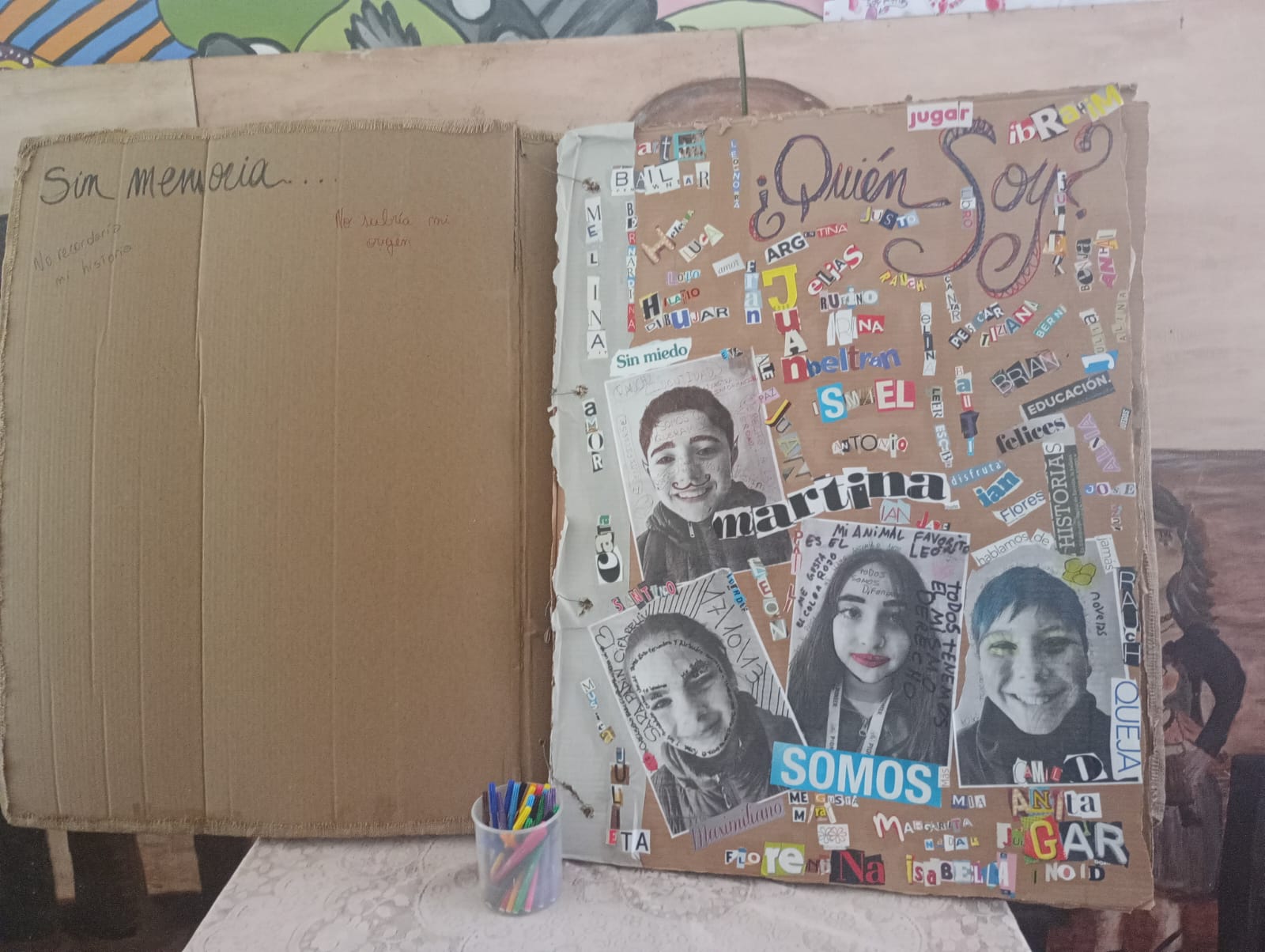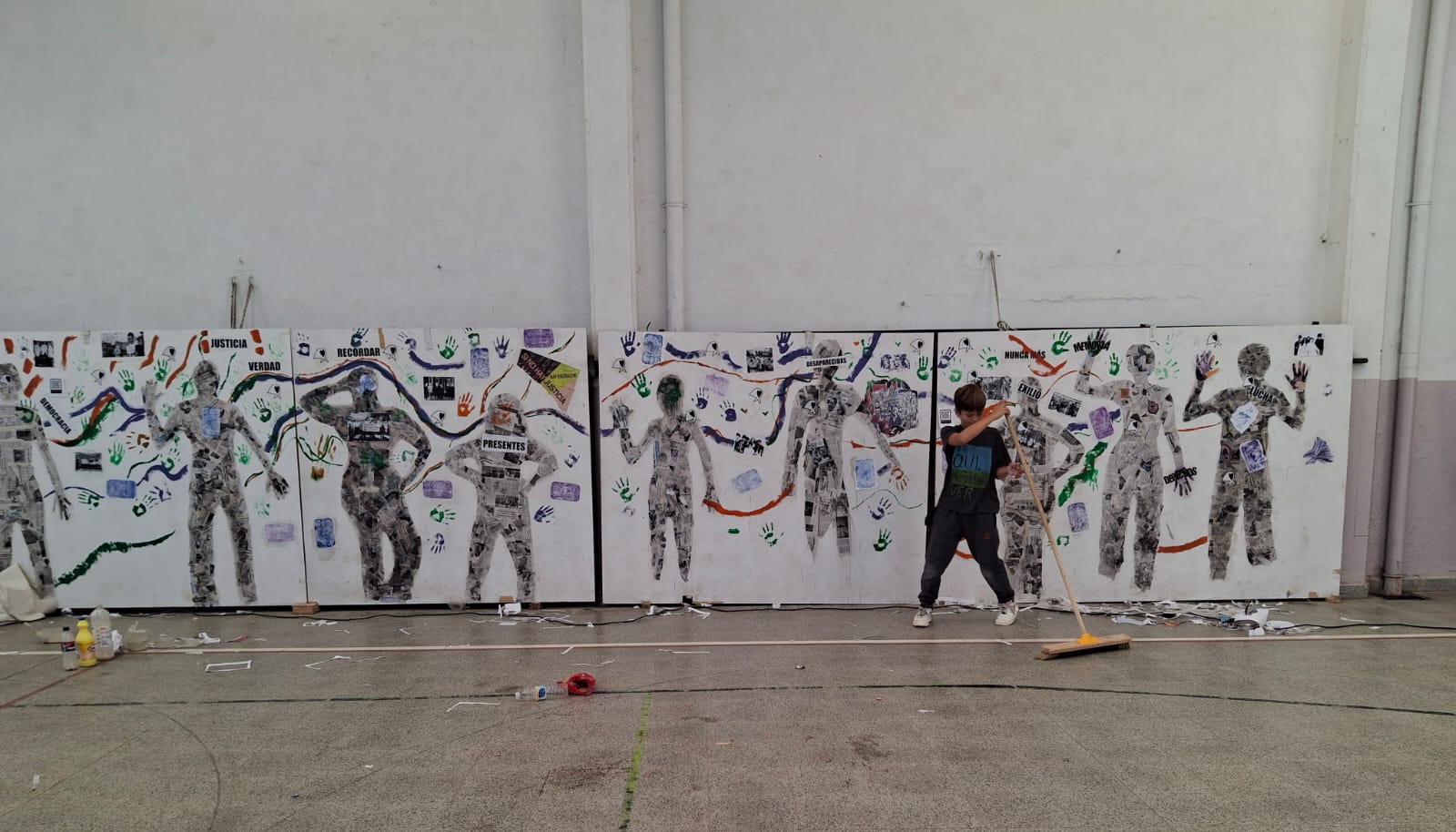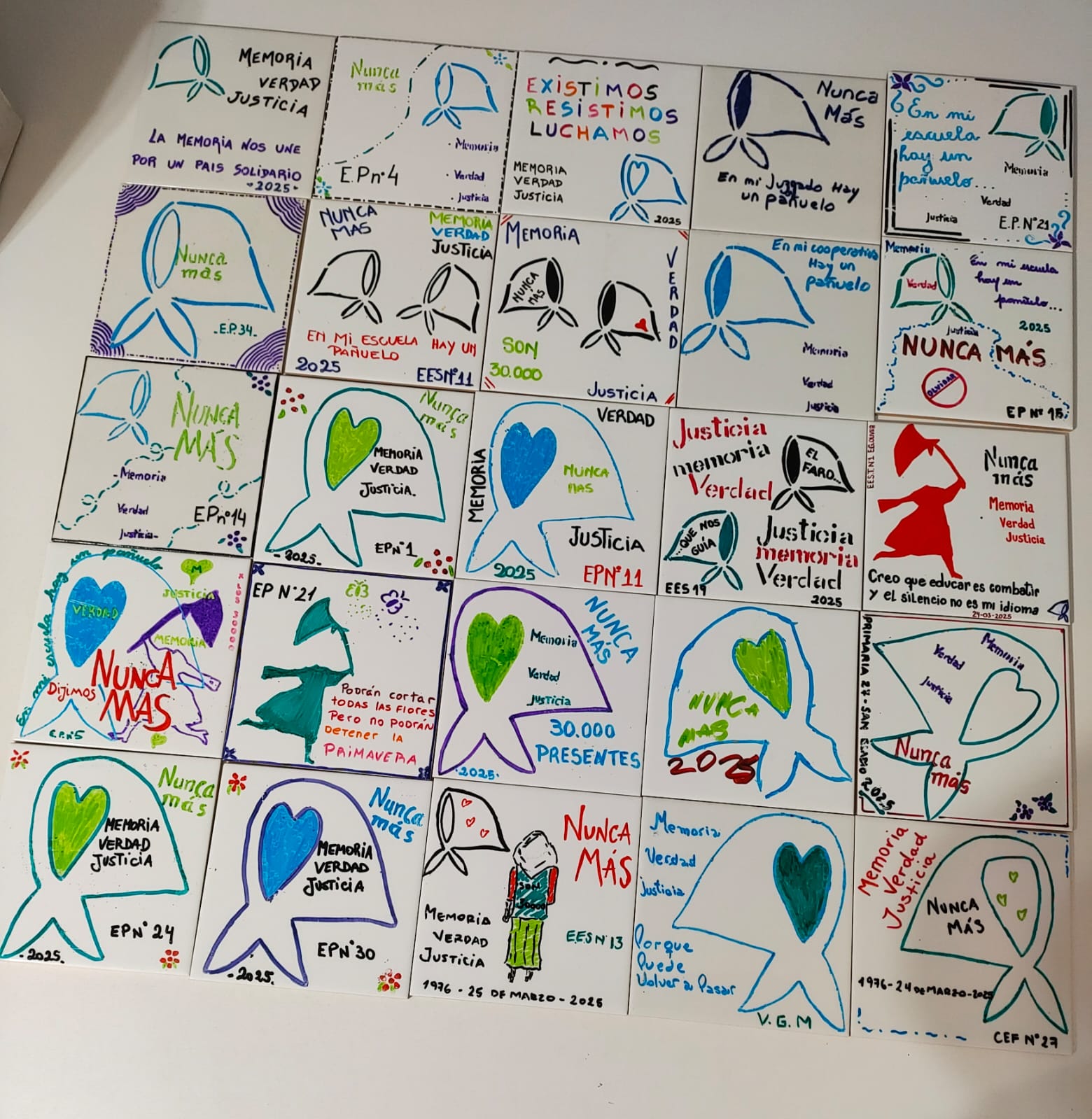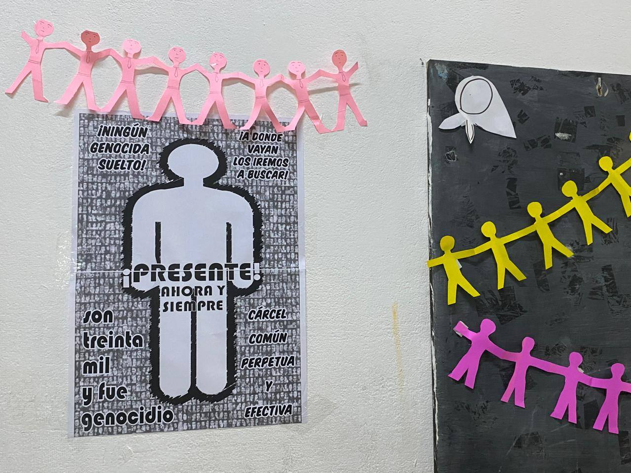 En Berisso, en el marco de la campaña de Abuelas "La memoria en marcha", se recortaron pequeñas siluetas de diferentes colores, en las aulas, bibliotecas, en el sindicato y en la Vigilia en el Parque Cívico.