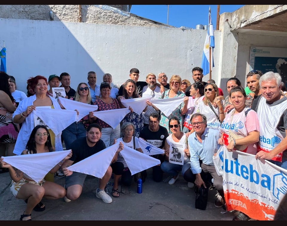 En Las Heras, desde el SUTEBA local participaron del festival de DDHH en la localidad de Marcos Paz junto a la artista plástica Paula Giménez, quien presentó su obra en homenaje a lxs detenidxs desaparecidxs de Las Heras.