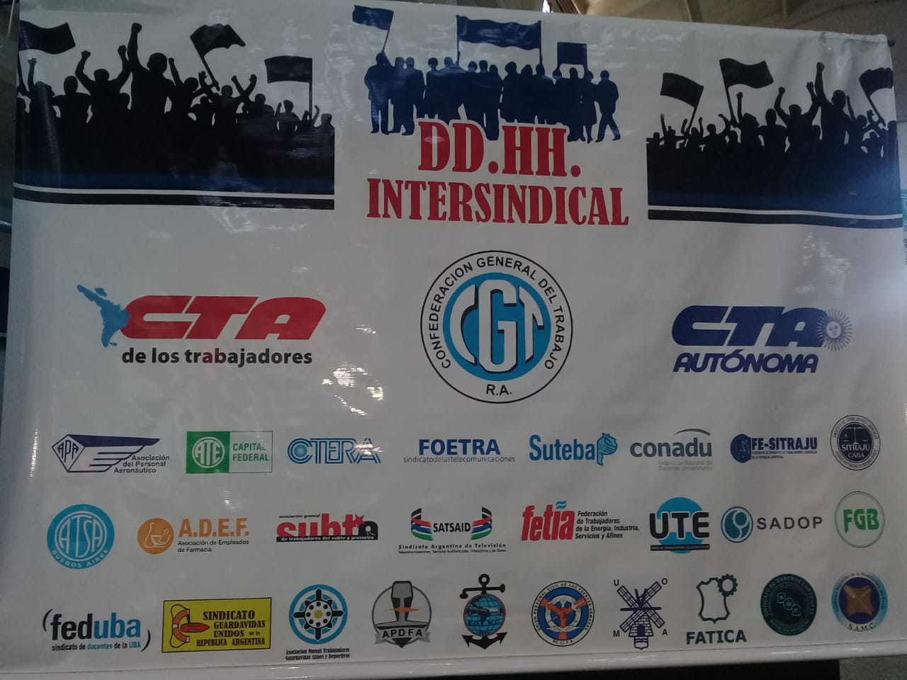 El viernes 7 de diciembre, en la Ex ESMA, se inauguró en la Casa de la Militancia de la Agrupación H.I.J.O.S un espacio cedido por la Agrupación a la Mesa Intersindical de Derechos Humanos, quien hizo pública la presentación de la labor que viene desarrollando en defensa de los Derechos Humanos de todxs lxs Trabajdorxs. La misma está conformada por Secretarías de Derechos Humanos de Sindicatos pertenecientes a la CTA de lxs Trabajadorxs, CTA Autónoma y a la Corriente Federal de la CGT.