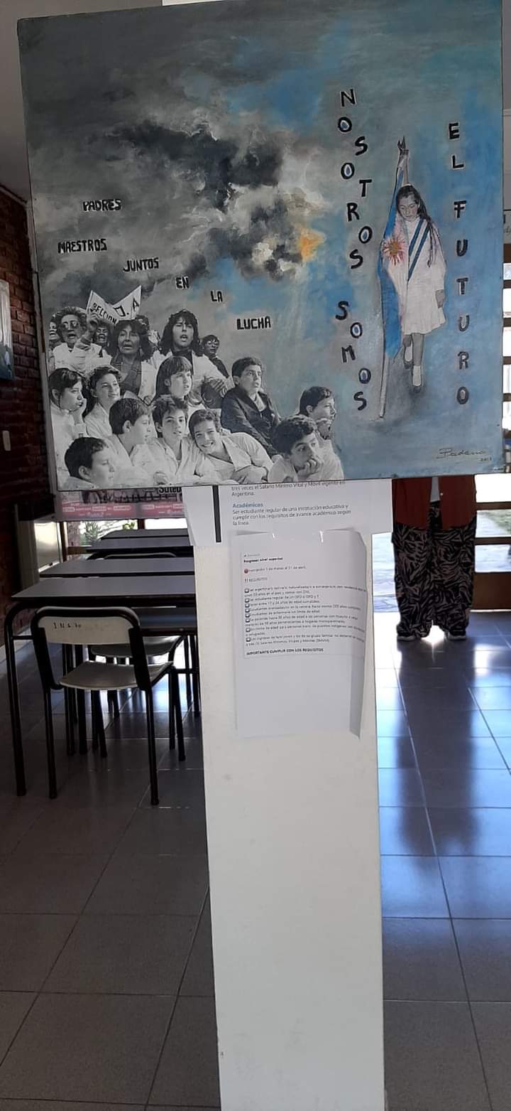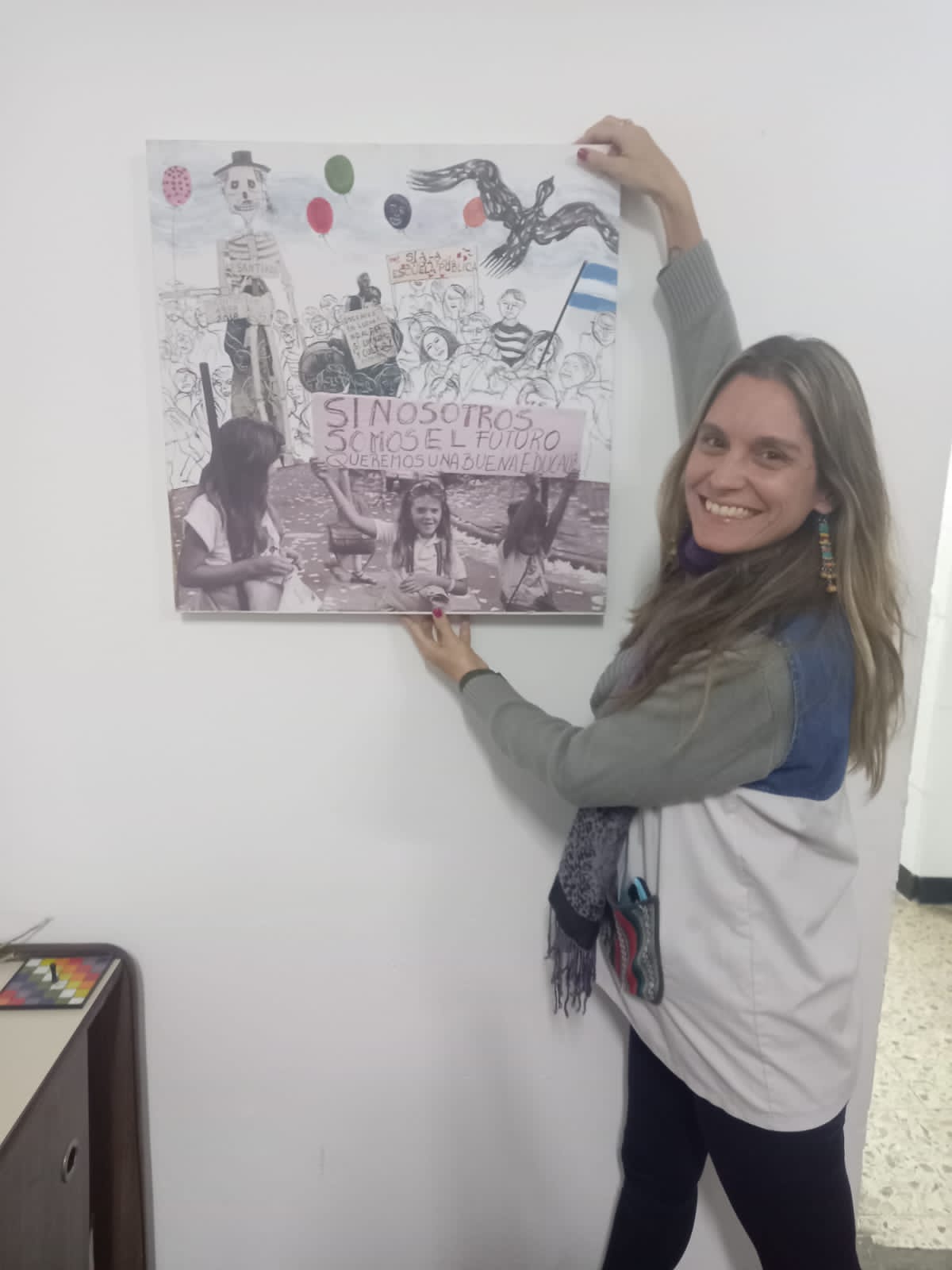 Actualmente, se encuentra expuesta en SUTEBA Tandil, siendo compartida con lxs afiliadxs del distrito en el Centro Cultural "Arte y Parte". Además, la semana pasada fue parte de las actividades realizadas con jóvenes de la Escuela Secundaria N.º 2, entre las que tuvo lugar una charla debate acerca de la Escuela Pública y el rol de la Educación.