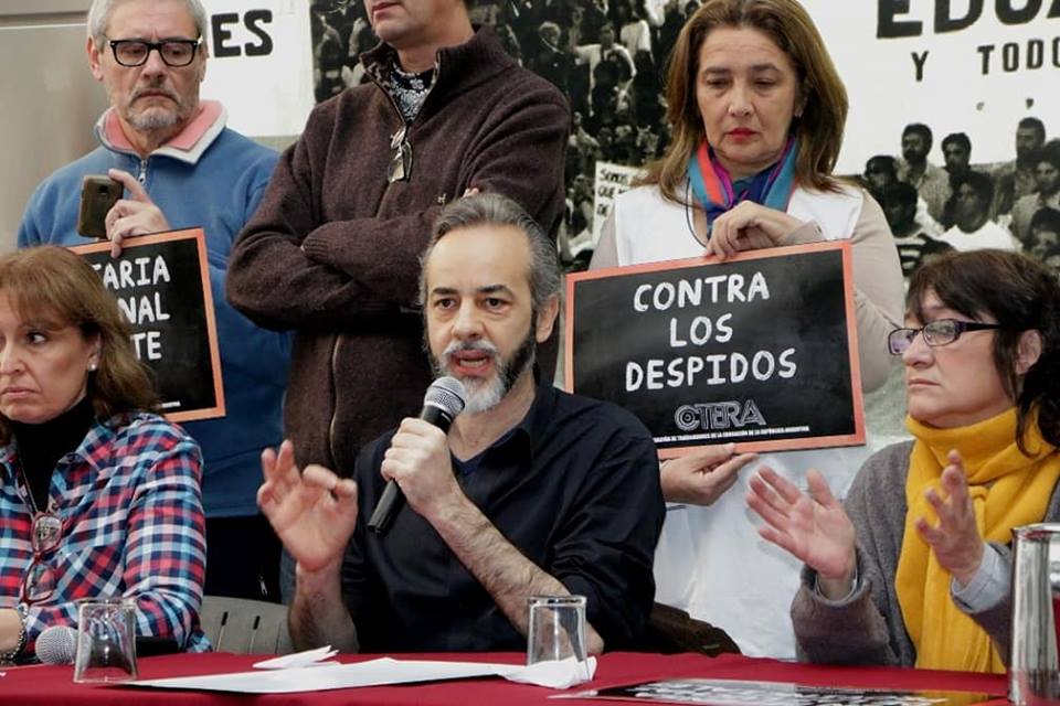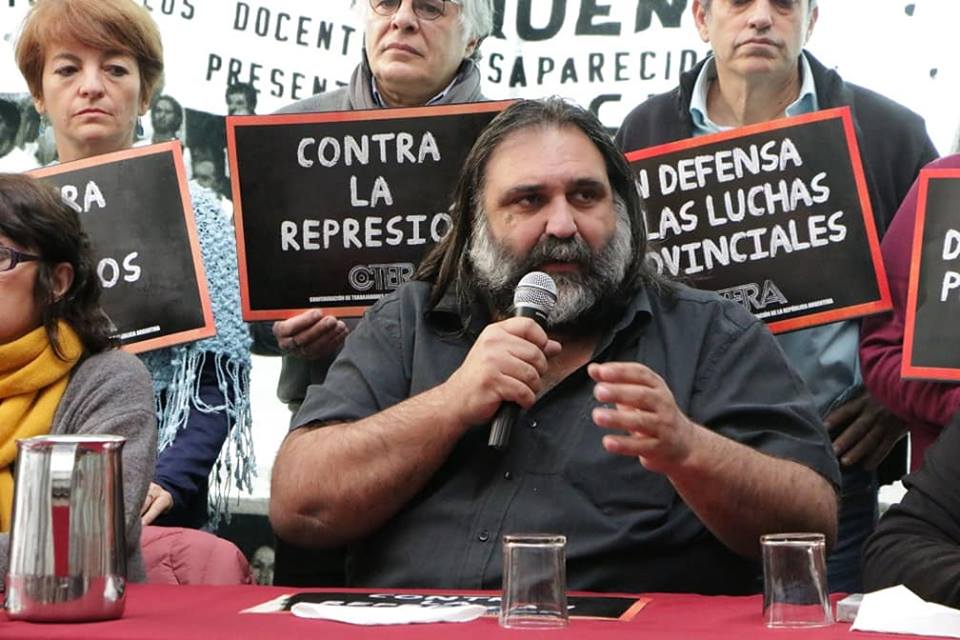 Eduardo López, Secretario General de UTE y Gremial de CTERA, citó a Hugo Yasky y dijo: "Tenemos un límite desde siempre, la represión. Nuestra dignidad no se negocia. Seguimos defendiendo las banderas de Carlos, de Stella y de todxs nuestrxs compañerxs desaparecidxs".