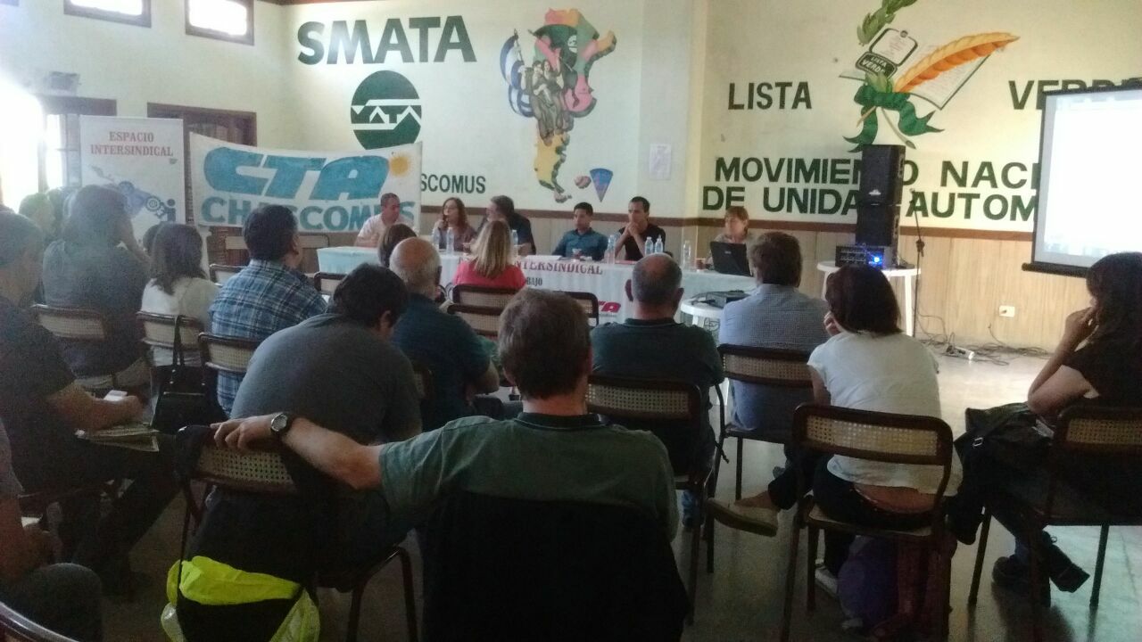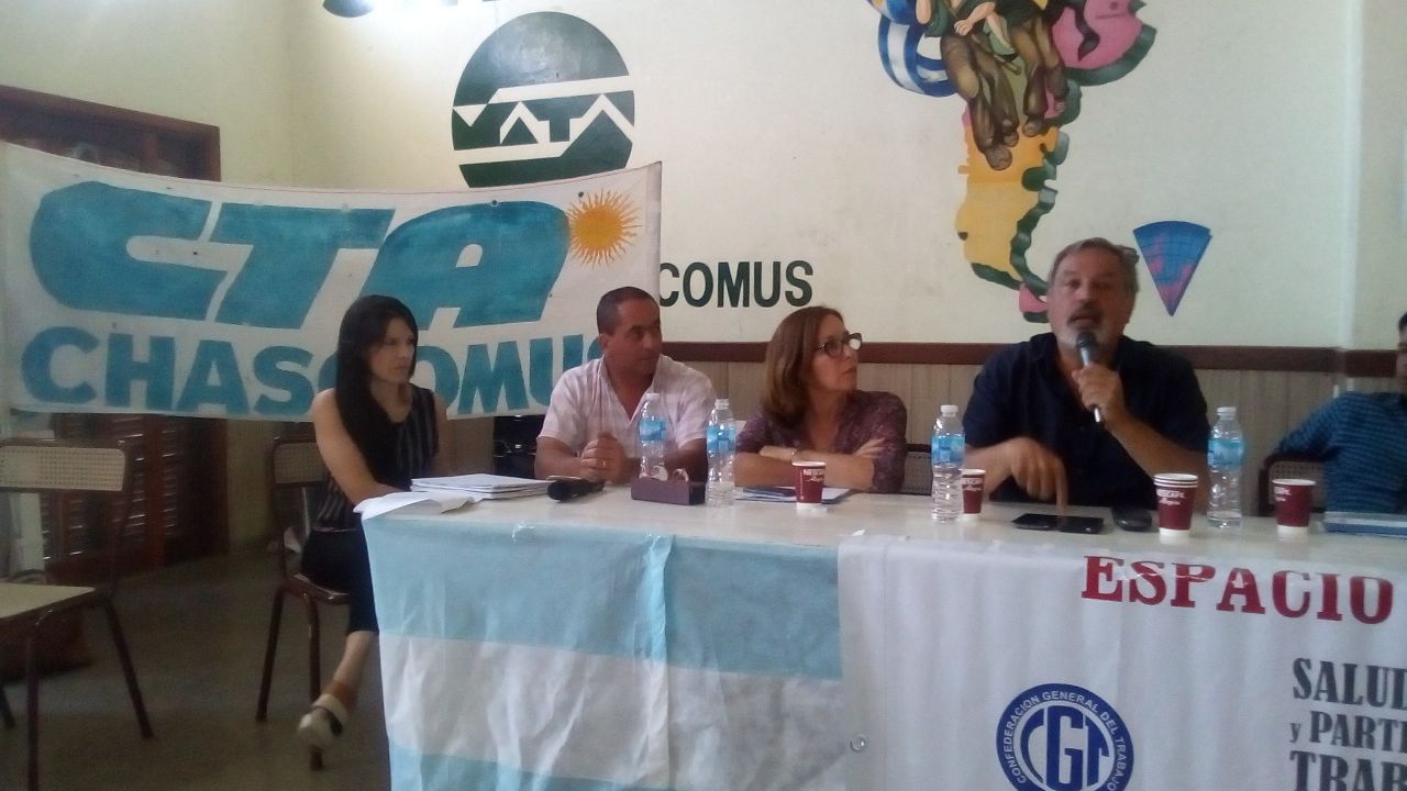 En el día de hoy a las 15 hs. en Chascomús, se realizó una jornada intersindical en contra de la Ley de Riesgos de Trabajo, coordinada por Lilian Capone, Coordinadora del Espacio Salud, Trabajo y participación de lxs Trabajadorxs.