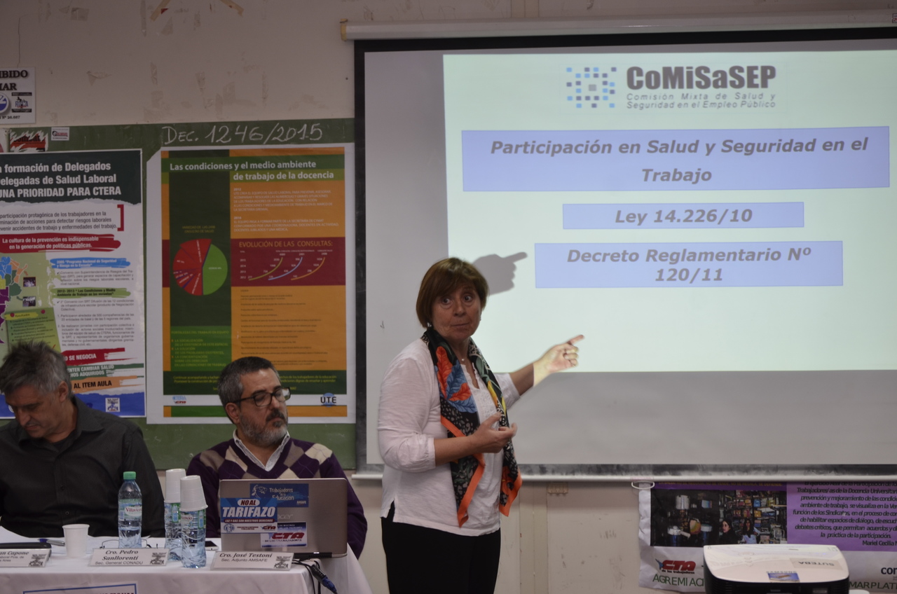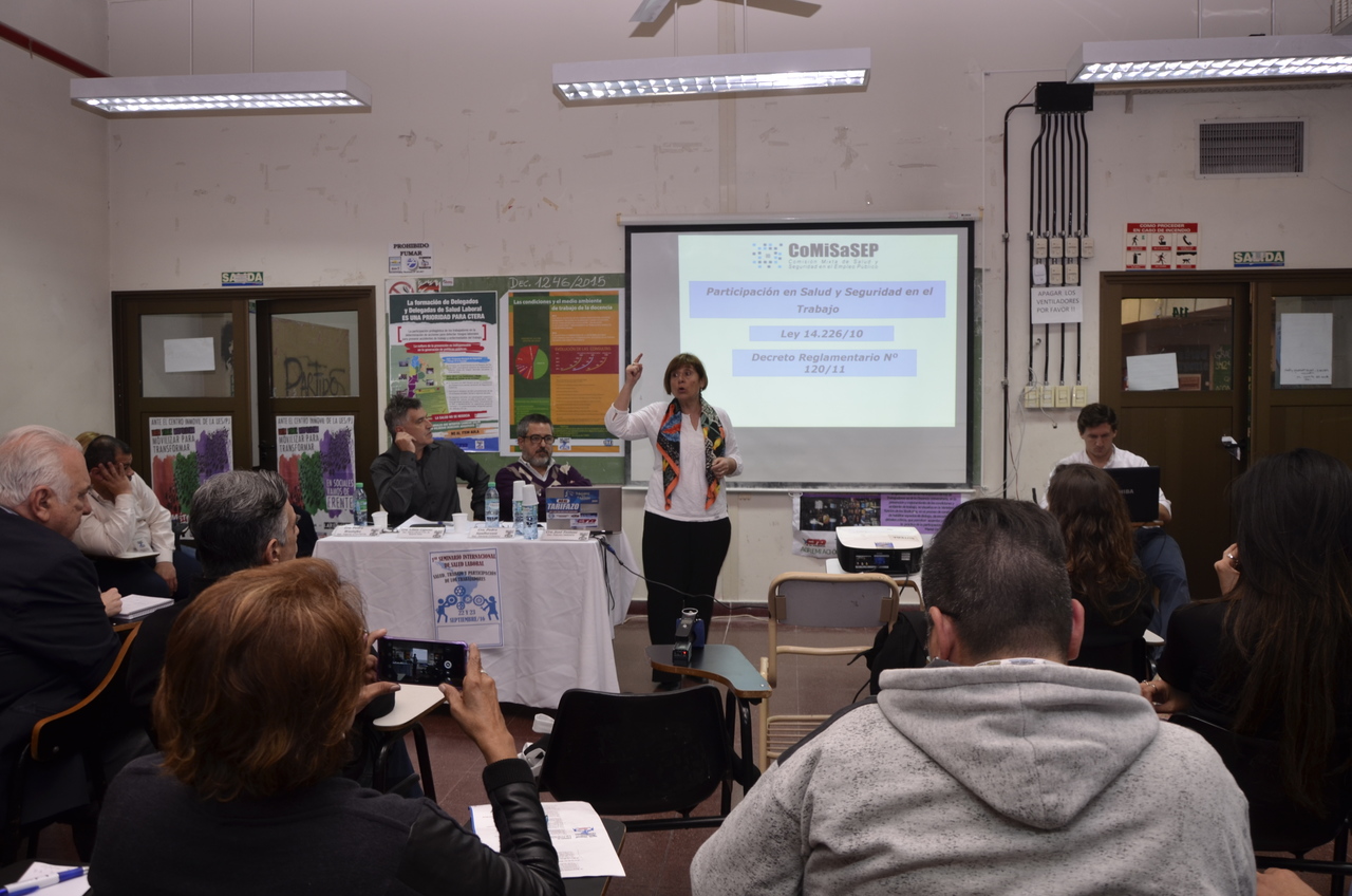 Este Seminario continuó el viernes 23 con la realización de tres conferencias simultáneas: "Ley de Prevención de la Salud de los Trabajadores"; "Salud, Trabajo y Participación de los Trabajadores", donde participó Lilian Capone para debatir sobre la Ley de Comités Mixtos, realizar un recorrido histórico por su sanción y remarcar las responsabilidades que tienen que cumplir los trabajadores y el Estado en este ámbito, y finalmente "Flexibilización y Precarización Laboral". Alrededor de 470 trabajadores estuvieron debatiendo en estas comisiones.