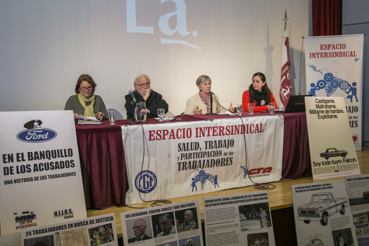 En la segunda mesa del encuentro disertaron María Reigada, Secretaria de DDHH de la CTA Provincia de Buenos Aires; Patricia Mounier, Secretaria de DDHH de SADOP, y Victorio Paulón, Secretario de DDHH de la CTA Nacional, con la moderación de Paola Ayala, representante del Sindicato de Sanidad.