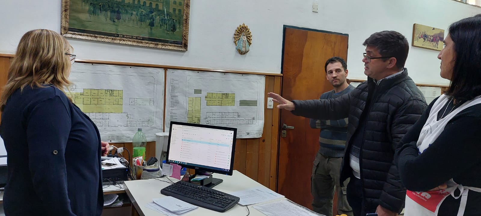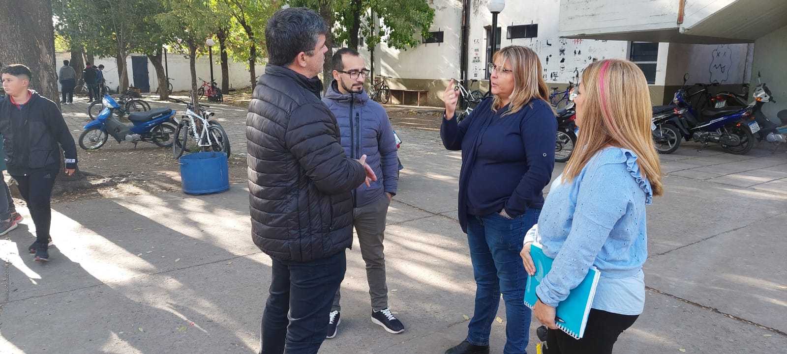El Secretario de Educación Técnica, Javier Perín, visitó el establecimiento junto a María Fernanda Rodríguez y Evangelina Pirroncello, Secretaria General y Adjunta del SUTEBA local, respectivamente.