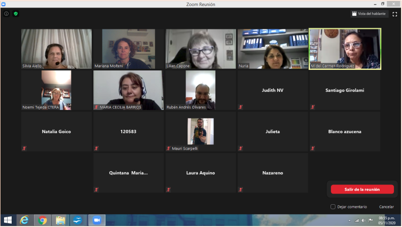 La convocatoria fue realizada por el Dr. Jorge Kohen y tuvo el objetivo de compartir el saber construido por y desde lxs Trabajadorxs. Participaron compañeras de la CTERA, AMSAFE y UTELPA. Por el SUTEBA estuvieron presentes Mariana Molteni, Secretaria de Salud, y María del Carmen Rodríguez, Subsecretaria de Servicios de Salud, sumada la participación de Lilian Capone, Secretaria de Salud Laboral de la CTA Provincia de Buenos Aires.
