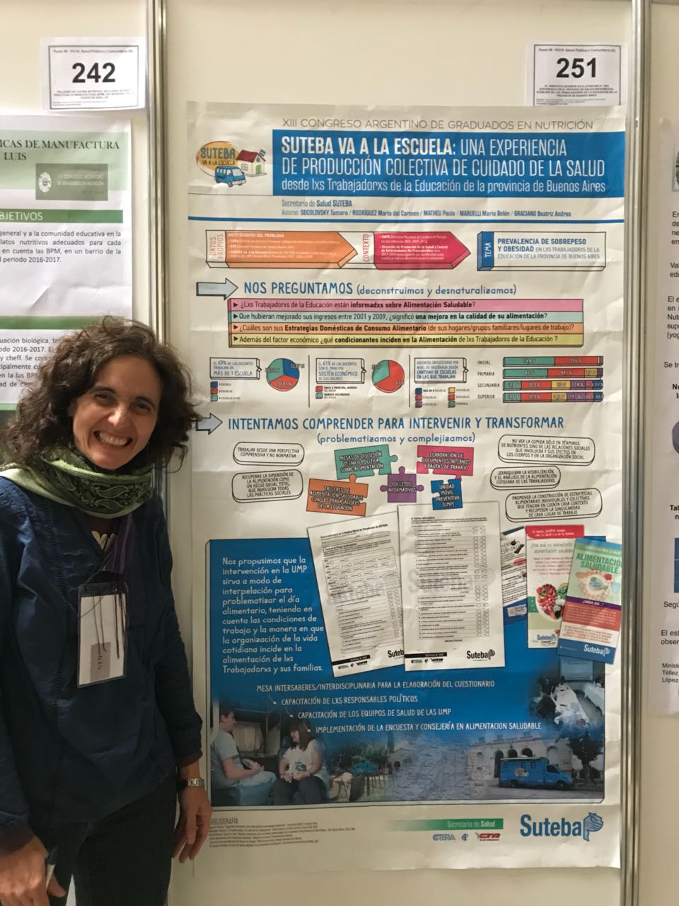 La doctora Tamara Socolovsky presentó el trabajo realizado por el Equipo de Salud de nuestra Secretaría que explica la experiencia del proceso de trabajo realizado desde el Programa Suteba va a la Escuela en el tema Alimentación Saludable. De esta manera, se dio a conocer el proceso colectivo a través del cual elaboramos el instrumento (encuesta autoadministrable) que se utiliza actualmente y desde agosto de 2015 en la Unidad Móvil Preventiva (UMP).
