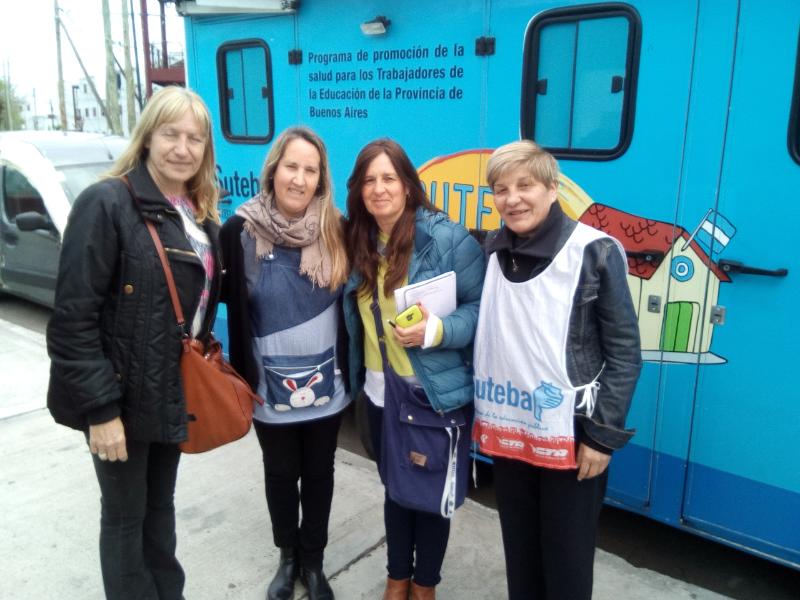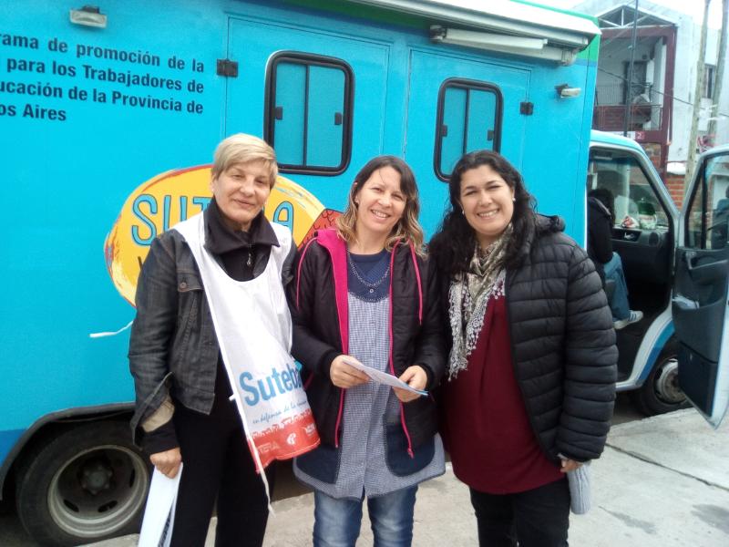 La Secretaria General del SUTEBA Lanús, Liliana Rossi, habló anticipadamente con lxs Directivxs y les acercó material y folletería de Salud.