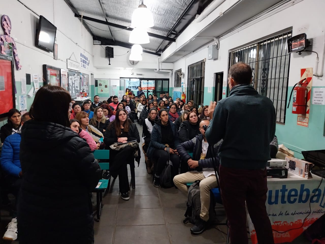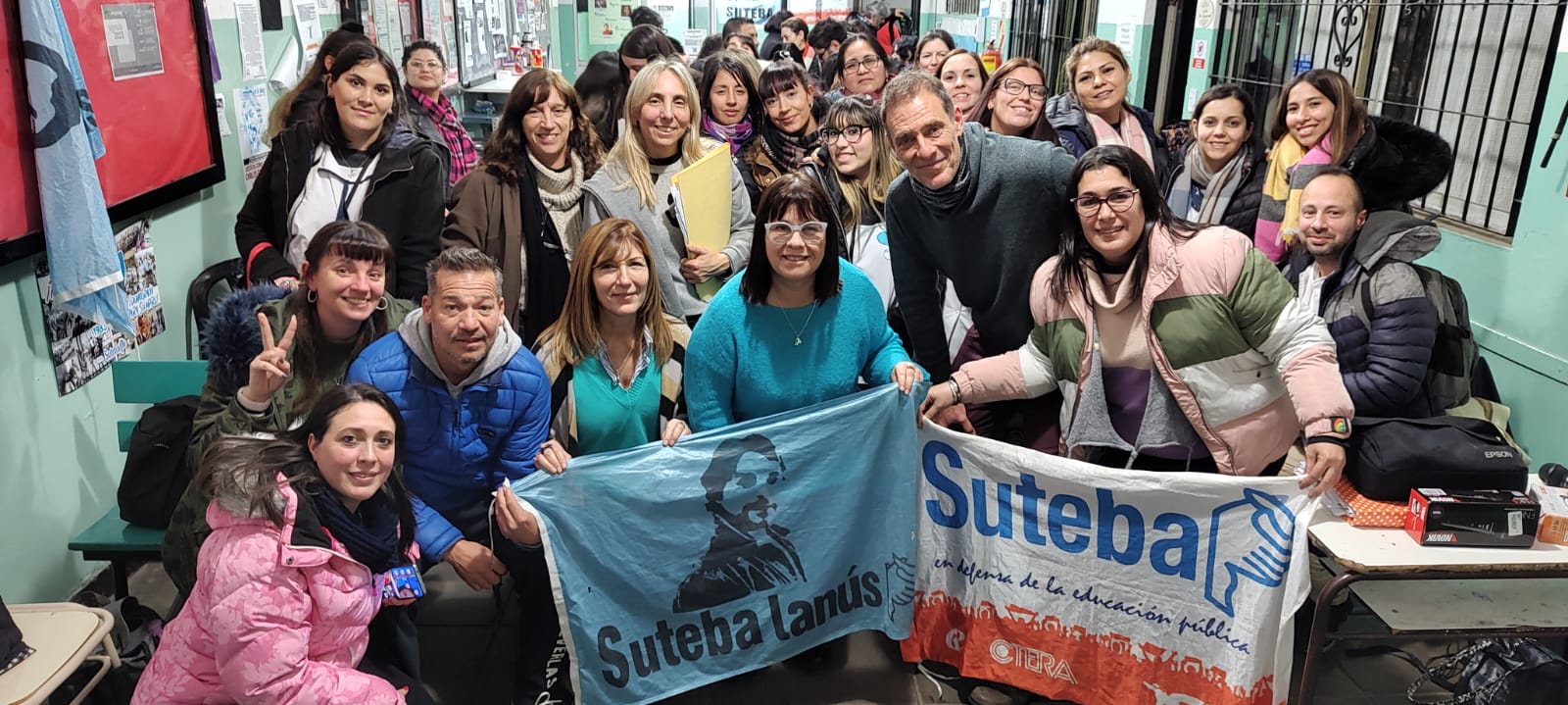 Analía Meaurio, Subsecretaria provincial de DDHH del SUTEBA, junto al plantel docente y directivo del Instituto e integrantes del CES del SUTEBA Lanús, estuvieron a cargo del desarrollo de la jornada, en la que estuvo también presente el Director de dicho documental, Alejandro Vagnenkos.