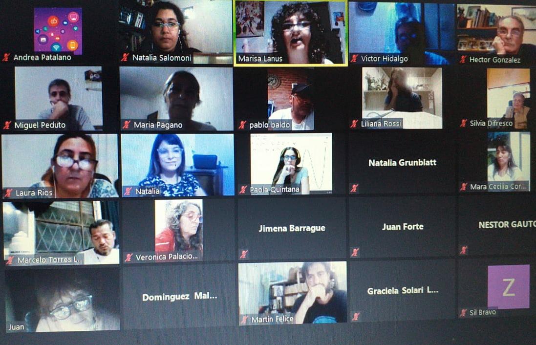 Con los minutos necesarios para la conformación del grupo asistente, Natalia Salomoni hizo la apertura al encuentro agradeciendo en la presencia de la Lic. Claudia Orso, fonoaudióloga; y Héctor González, miembro de la Secretaría de Cultura del SUTEBA Provincia.