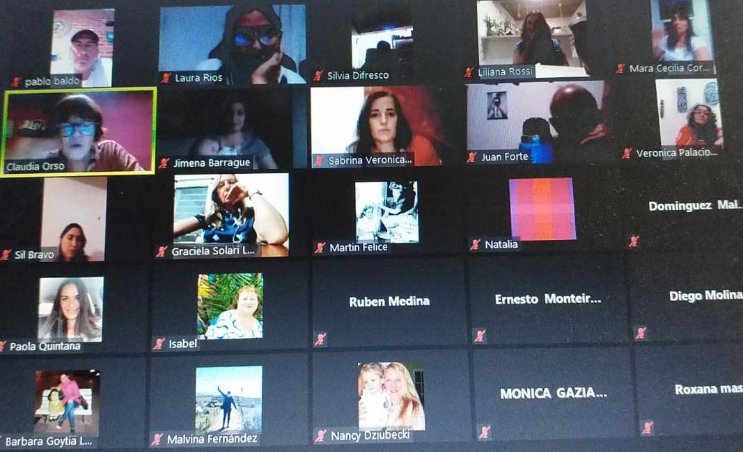 Natalia Salomoni dio inicio al 3er momento del taller, el intercambio con participación a través del chat que fue surgiendo y el pedido de palabra. Las intervenciones desarrolladas fueron creando un clima intimista y propició la participación espontánea de lxs asistentes.