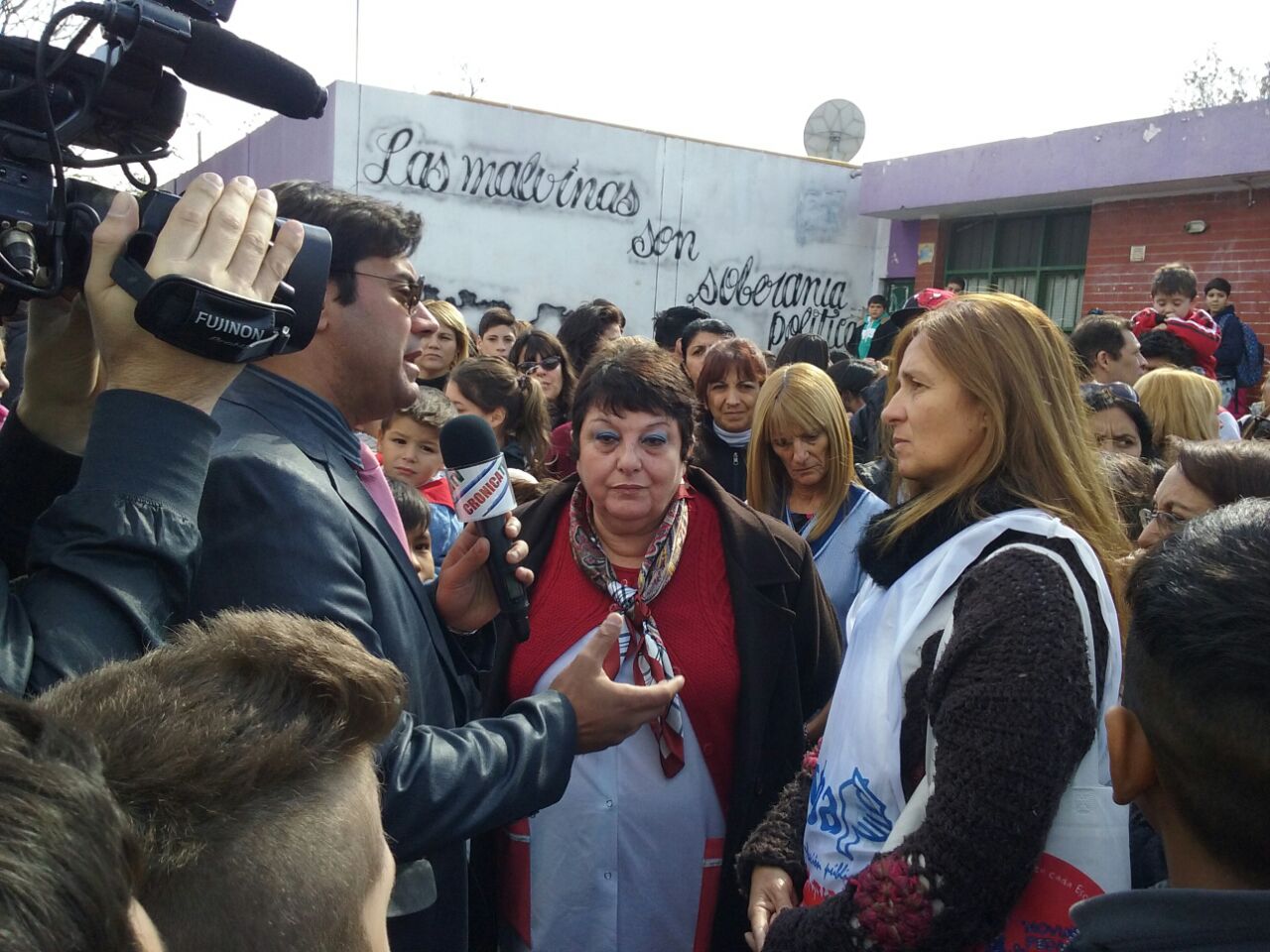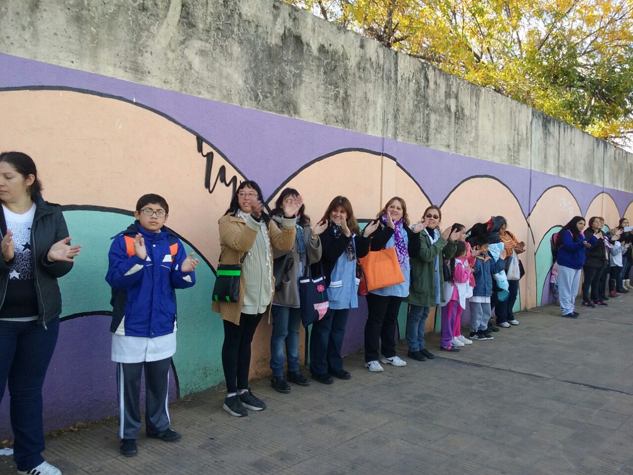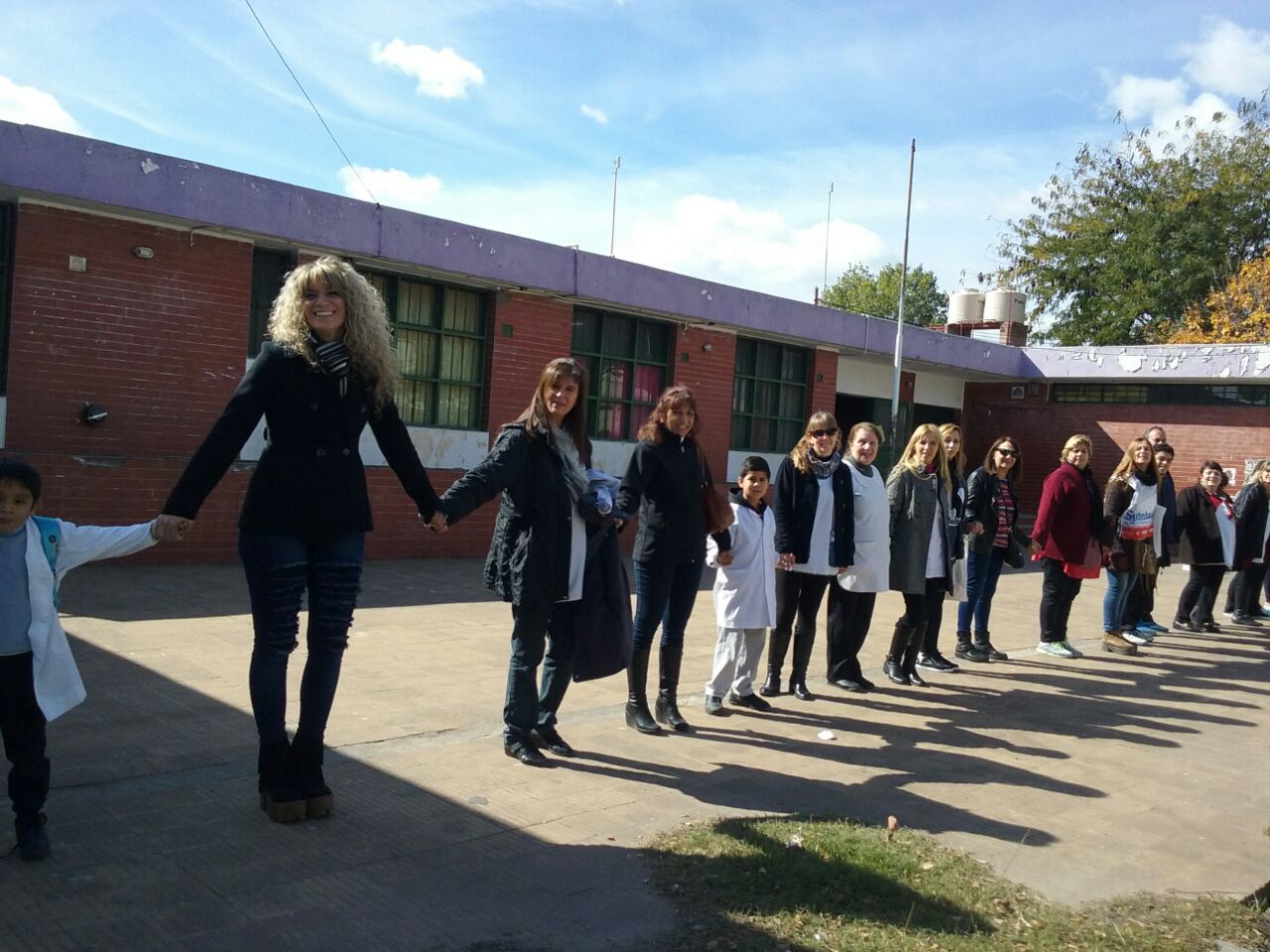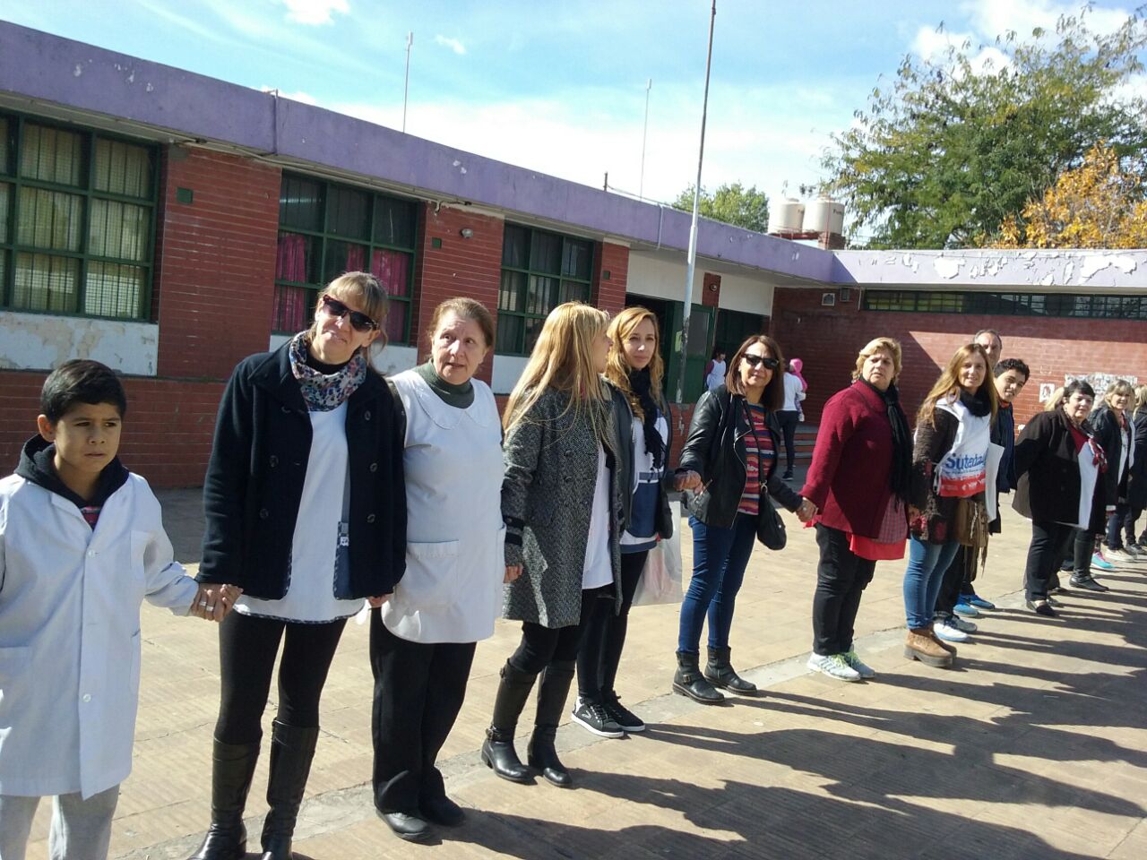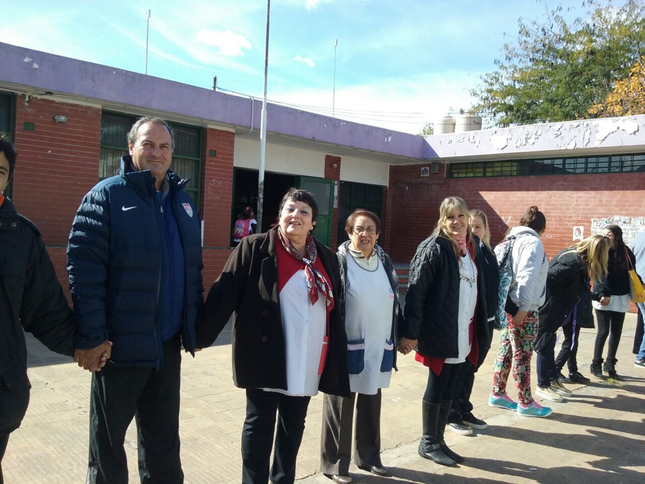 Ante esta situación, la Comunidad Educativa convocó a este abrazo, que muestra el compromiso de los Trabajadores de la Educación, los padres y los alumnos en la defensa de su Institución.