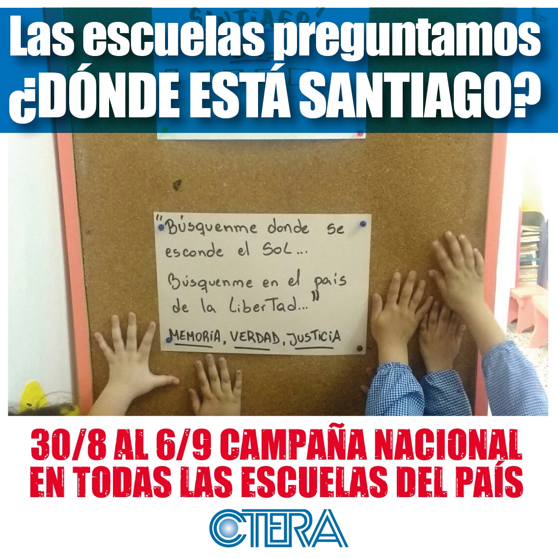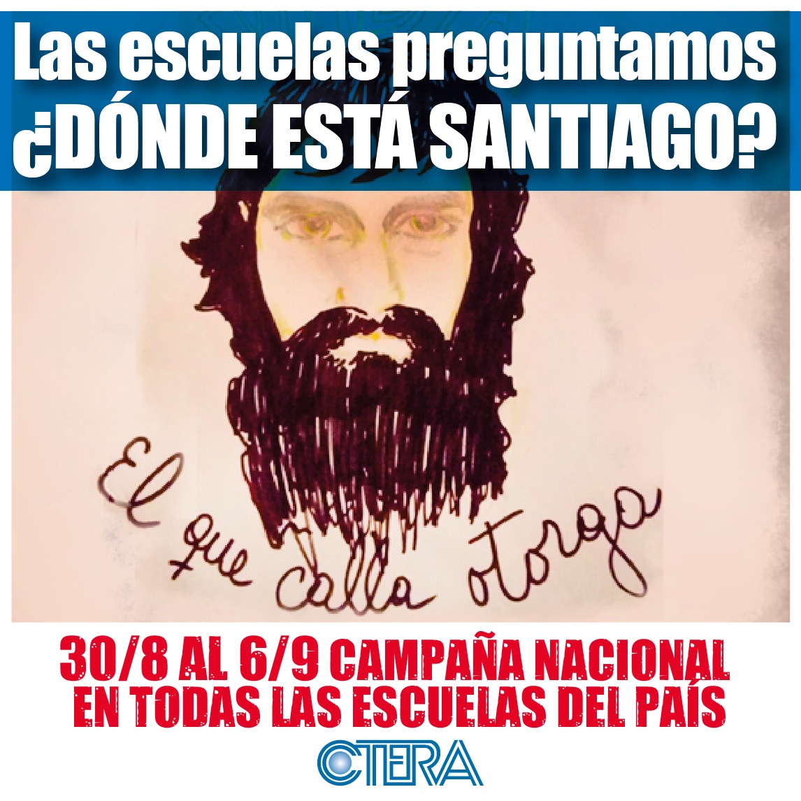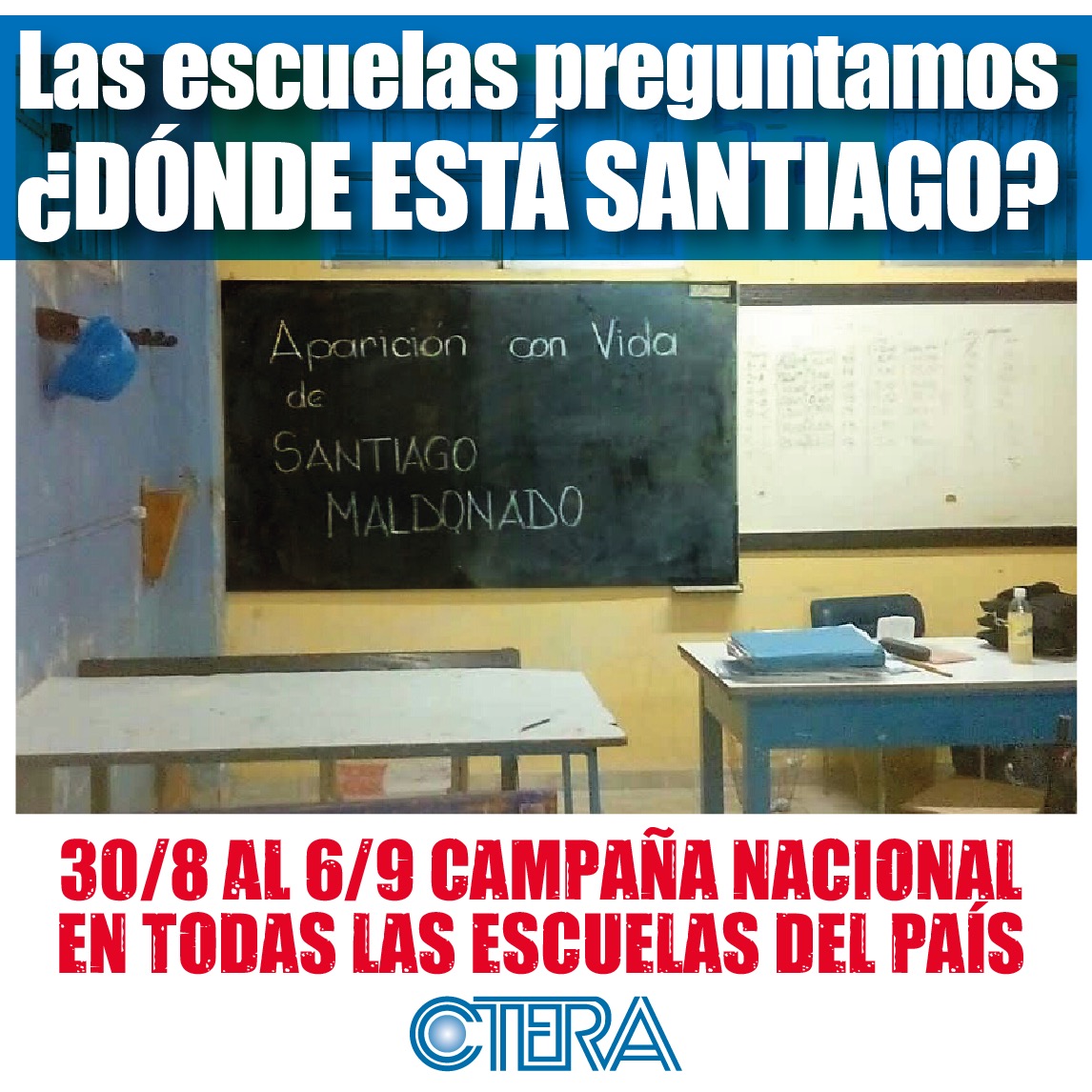 CTERA impulsa una campaña nacional desde cada una de las Escuelas del país, exigiendo la inmediata aparición con vida de Santiago Maldonado.