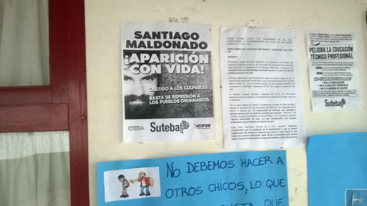 Las Escuelas preguntamos ¿DÓNDE ESTÁ SANTIAGO MALDONADO?