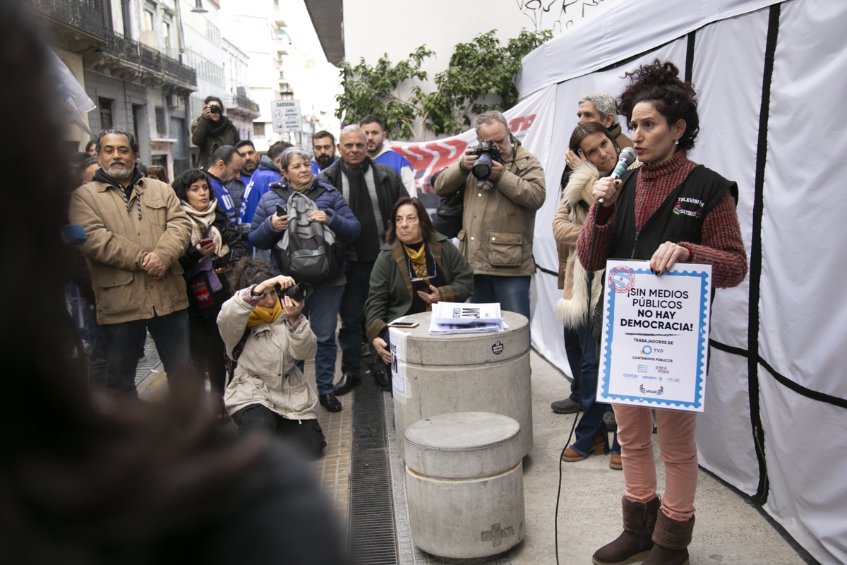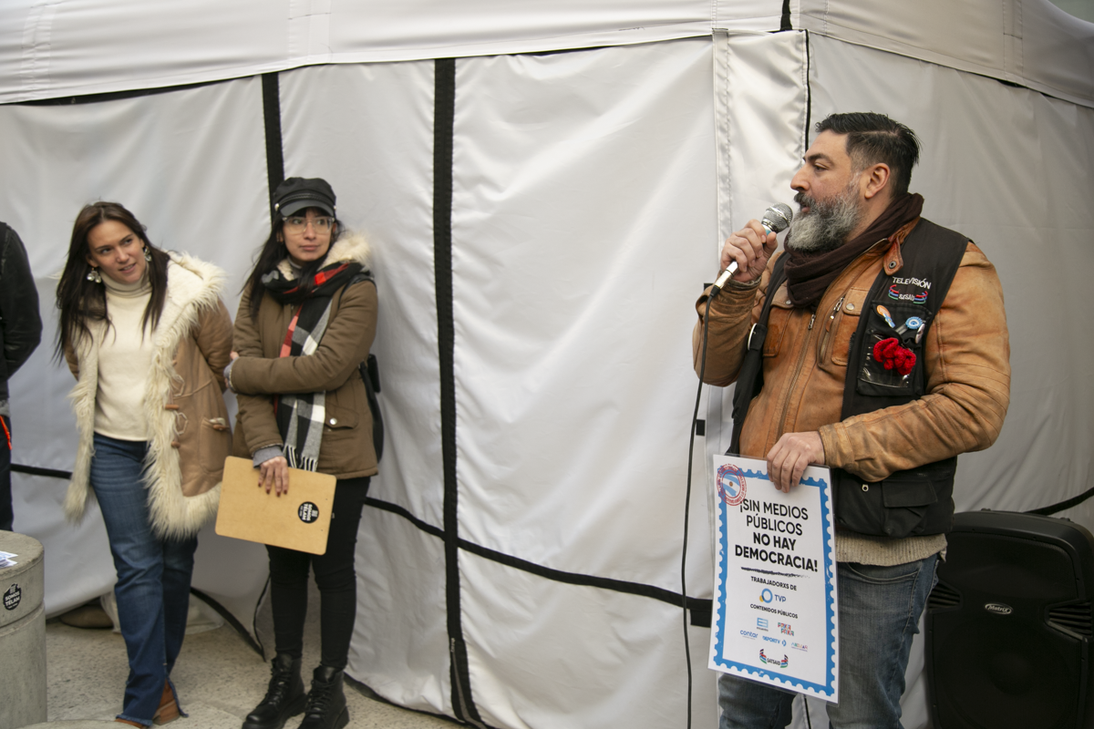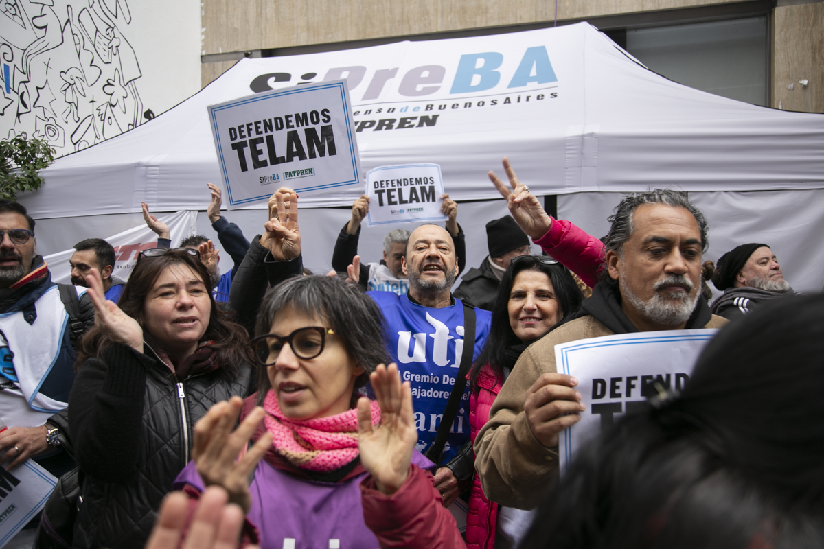 Desde el 4 de marzo, cuando el Gobierno Nacional manifestó su intención de cerrar la Agencia Nacional de Noticias, lxs Trabajadorxs mantienen acampes durante las 24 horas en las sedes de Bolívar 531 y Avenida Belgrano 347. Además, lanzaron un portal de noticias, Somos Télam, con textos, fotos, podcast y videos de libre disponibilidad.