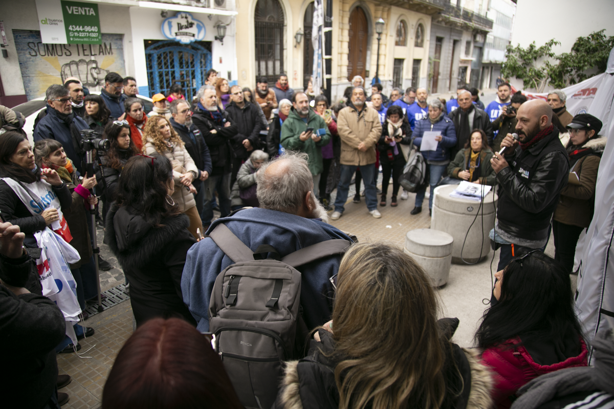 Desde el 4 de marzo, cuando el Gobierno Nacional manifestó su intención de cerrar la Agencia Nacional de Noticias, lxs Trabajadorxs mantienen acampes durante las 24 horas en las sedes de Bolívar 531 y Avenida Belgrano 347. Además, lanzaron un portal de noticias, Somos Télam, con textos, fotos, podcast y videos de libre disponibilidad.