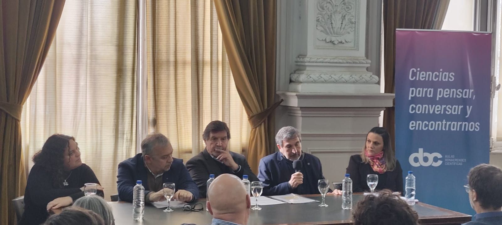 El panel inaugural estuvo integrado por el Director de la DGCyE, Alberto Sileoni, el Subsecretario de Educación Pablo Urquiza, el titular de Investigaciones Científicas de la Provincia Roberto Salvarezza, Celeste Adamoli, Coordinadora de Políticas Educativas de Memoria y DDHH, y Valeria Edelsztein, investigadora del CONICET y del Centro de Formación e Investigación en Enseñanza de las Ciencias (CEFIEC) de la Facultad de Ciencias Exactas y Naturales de la UBA.