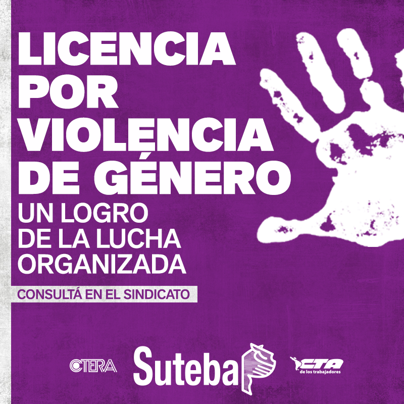 Gracias a la firmeza en la lucha colectiva, se hace realidad el derecho para las Trabajadoras de la Educación de la provincia de Buenos Aires de hacer uso de Licencia ante situaciones de violencia de género, con goce íntegro de haberes, enmarcado en la Ley Provincial Nº 1483/16.