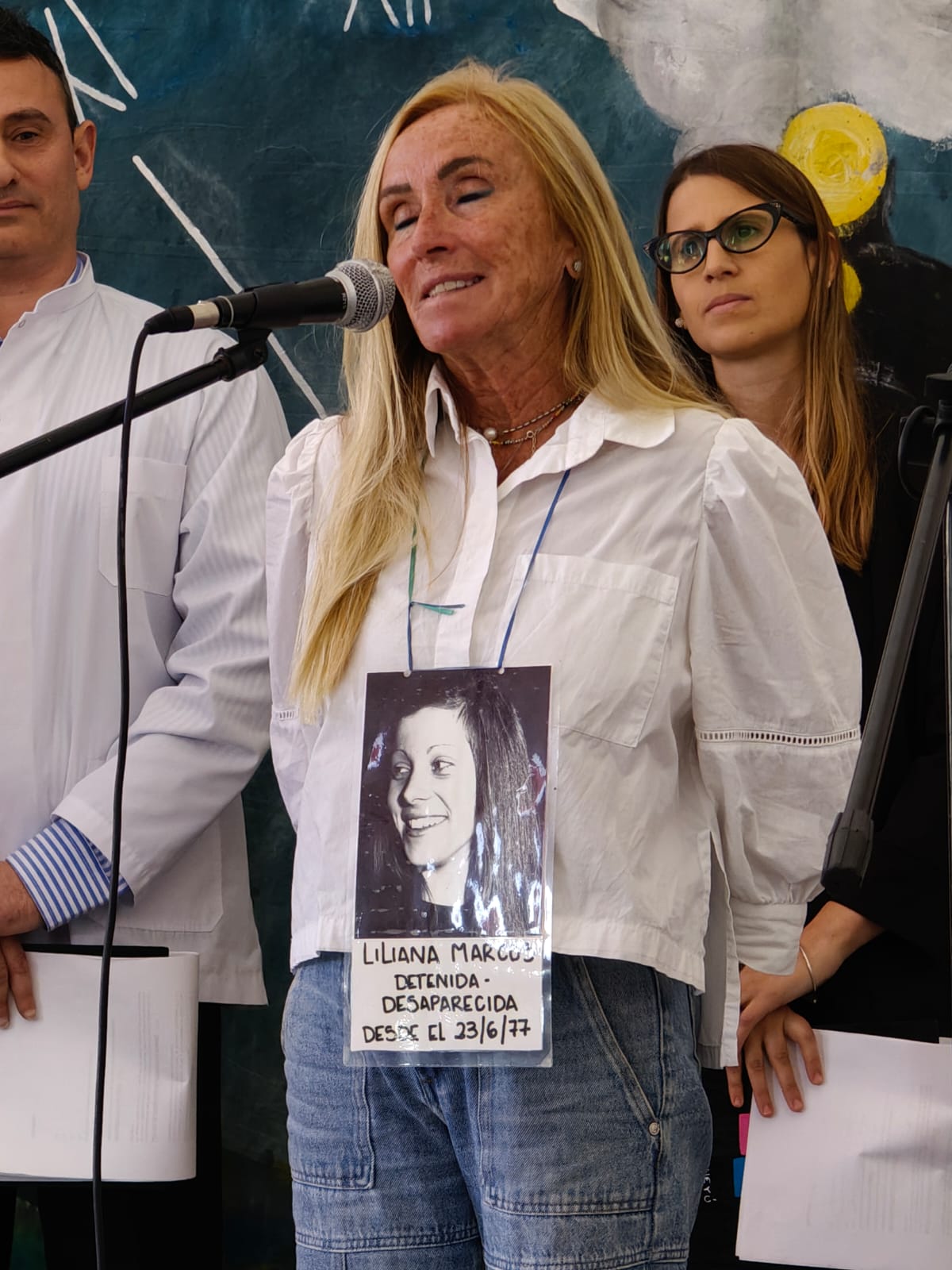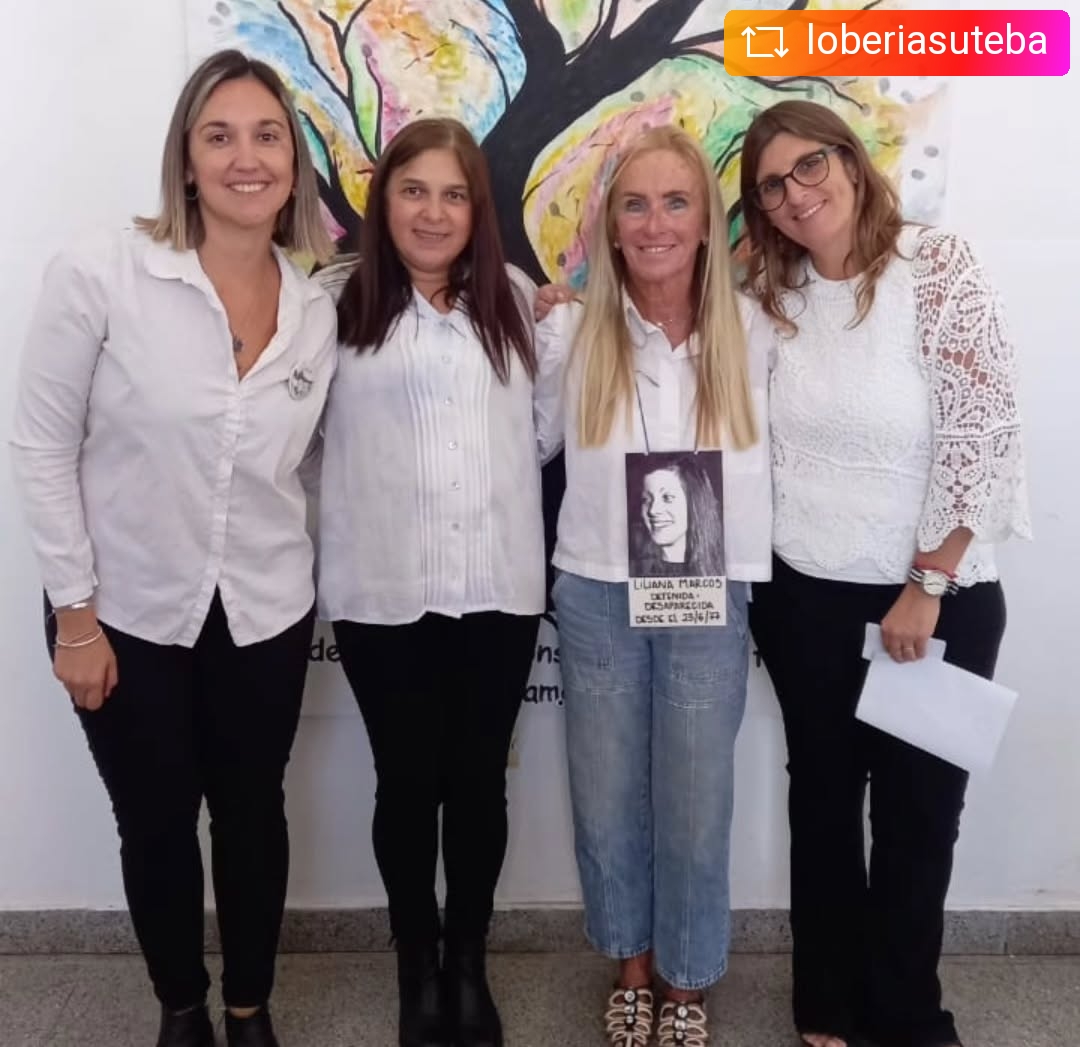 Con la presencia de María Laura Torre, Secretaria General Adjunta de SUTEBA Provincia, Cristina Echegoyen, Secretaria provincial de Igualdad de Géneros y Diversidades del SUTEBA, Soledad Echandía, Secretaria General del SUTEBA Lobería, junto a otrxs integrantes del CES local, se acompañó este emotivo acto, realizado en el marco de la propuesta de continuidad pedagógica y del Proyecto Distrital Memoria, Verdad y Justicia del año 2024, en el cual lxs Estudiantes investigaron sobre la vida de Lili Marcos, loberense nacida en Tamangueyú, secuestrada y desaparecida en manos de la última dictadura cívico militar, en la ciudad de La Plata, donde militaba y estudiaba. Su legajo como Estudiante de Psicología fue reparado en el año 2018.