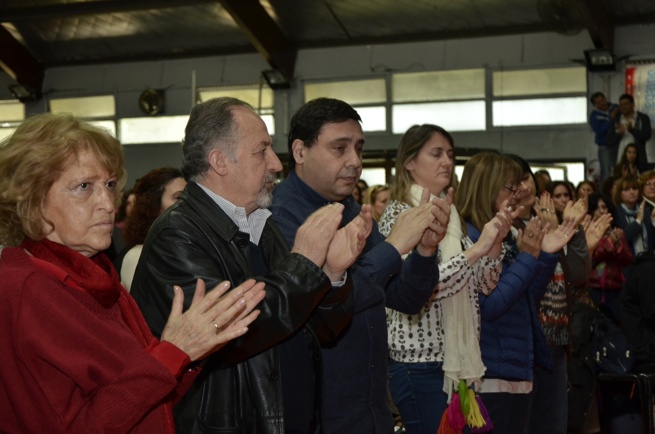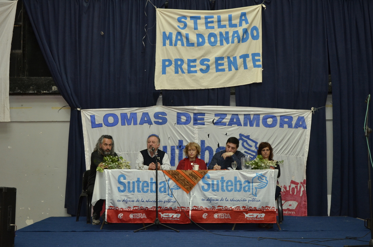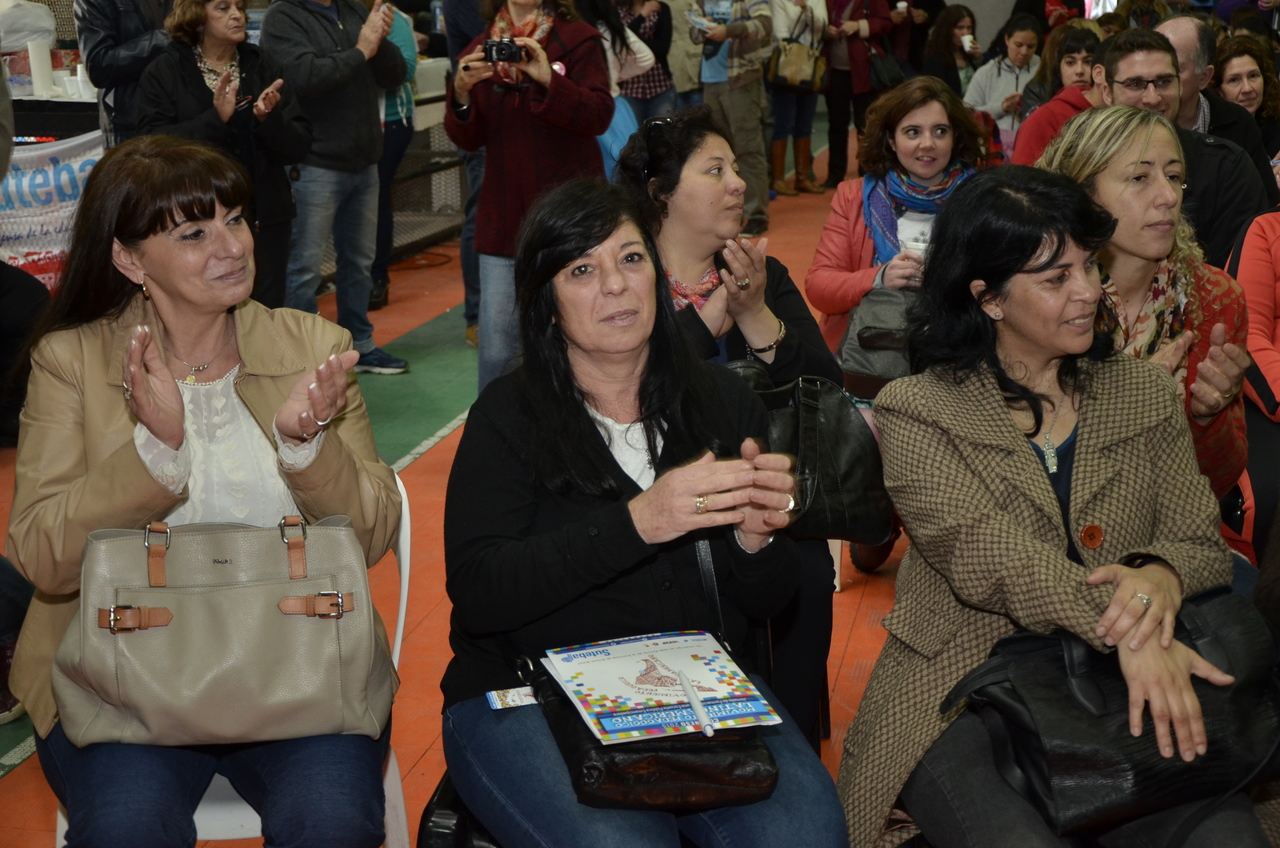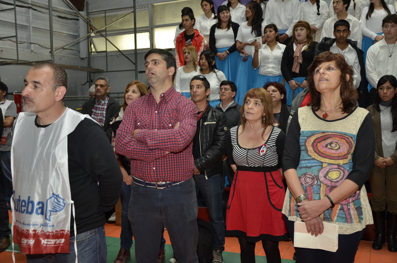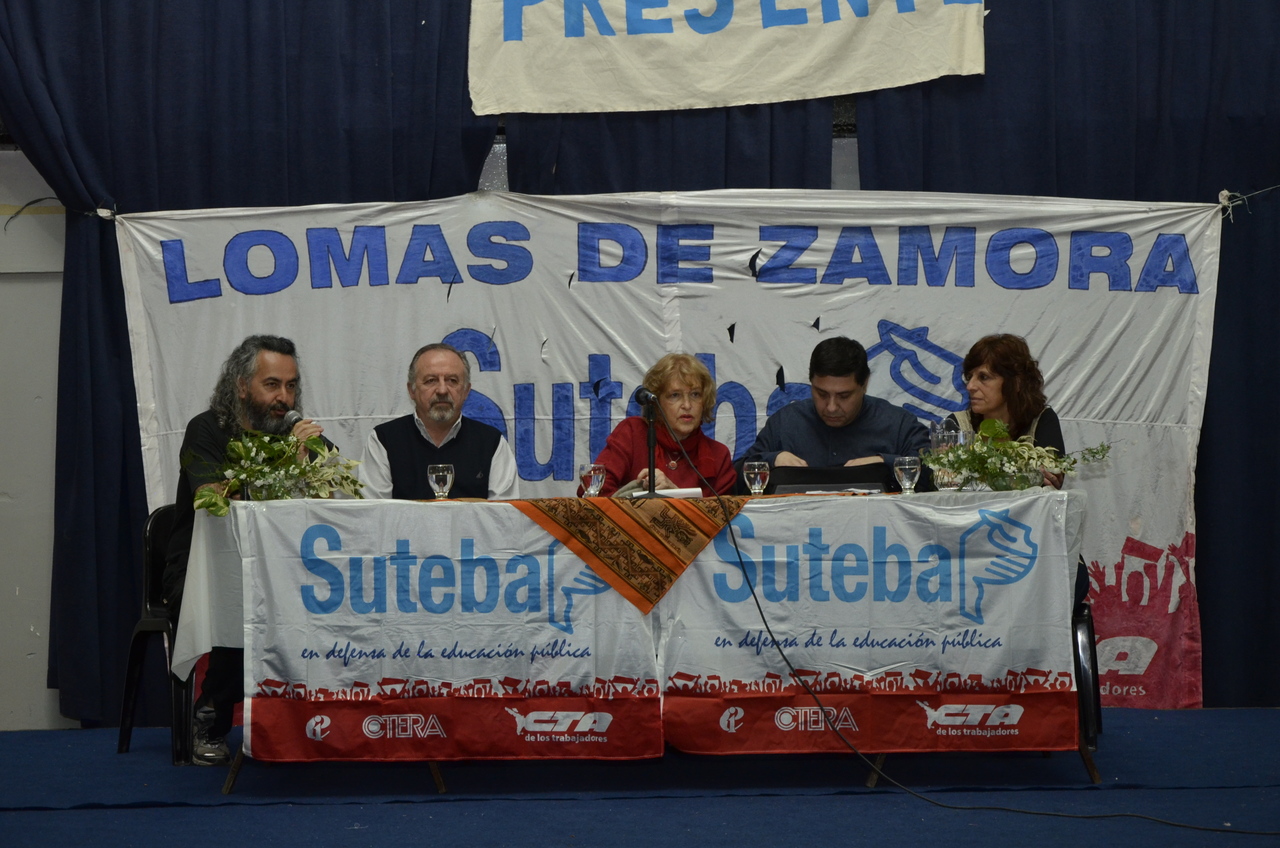 Una vez terminado el Himno, Adriana Grandoli, Secretaria General del SUTEBA Lomas de Zamora, dio continuidad al encuentro y expresó: "Es un orgullo y una alegría organizar este encuentro. Acá podemos dar testimonio de lo que hacemos a diario con los alumnos. Damos testimonio de nuestra historia, el SUTEBA sí defiende la Escuela Pública, no es un sindicato corporativista, no se piensa sólo en salarios sino también en las condiciones de trabajo para que todos los chicos tengan un espacio digno para aprender".