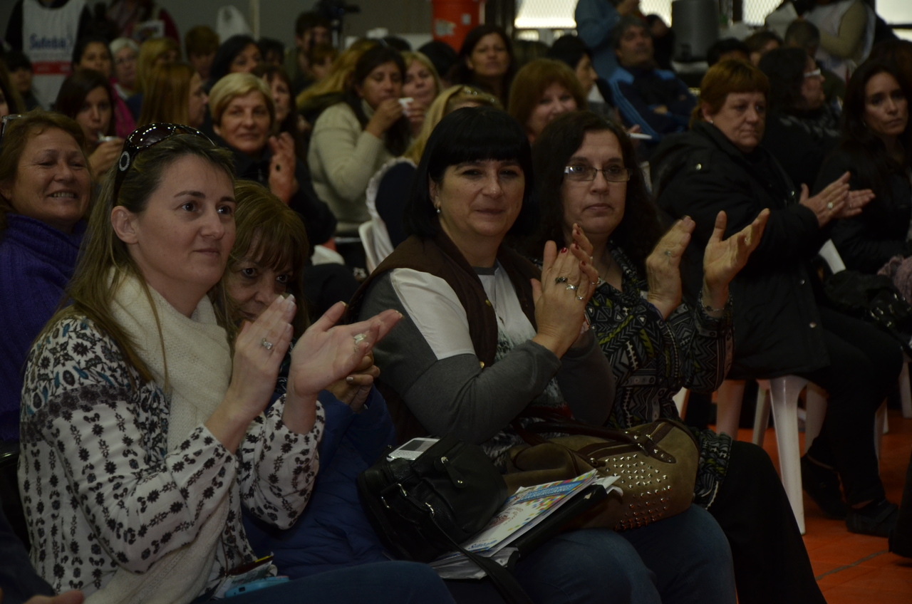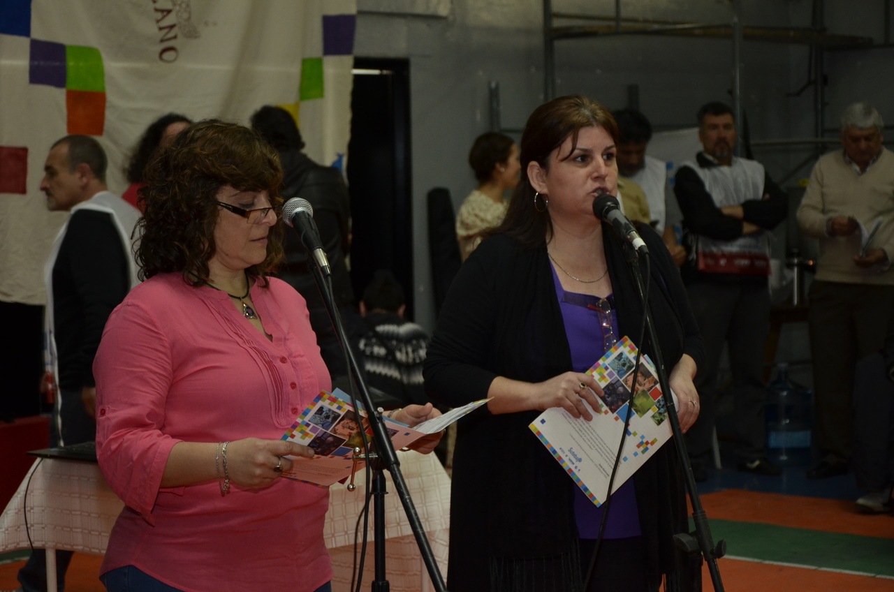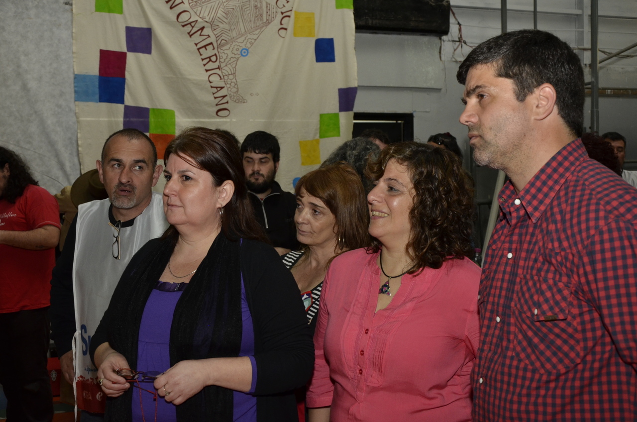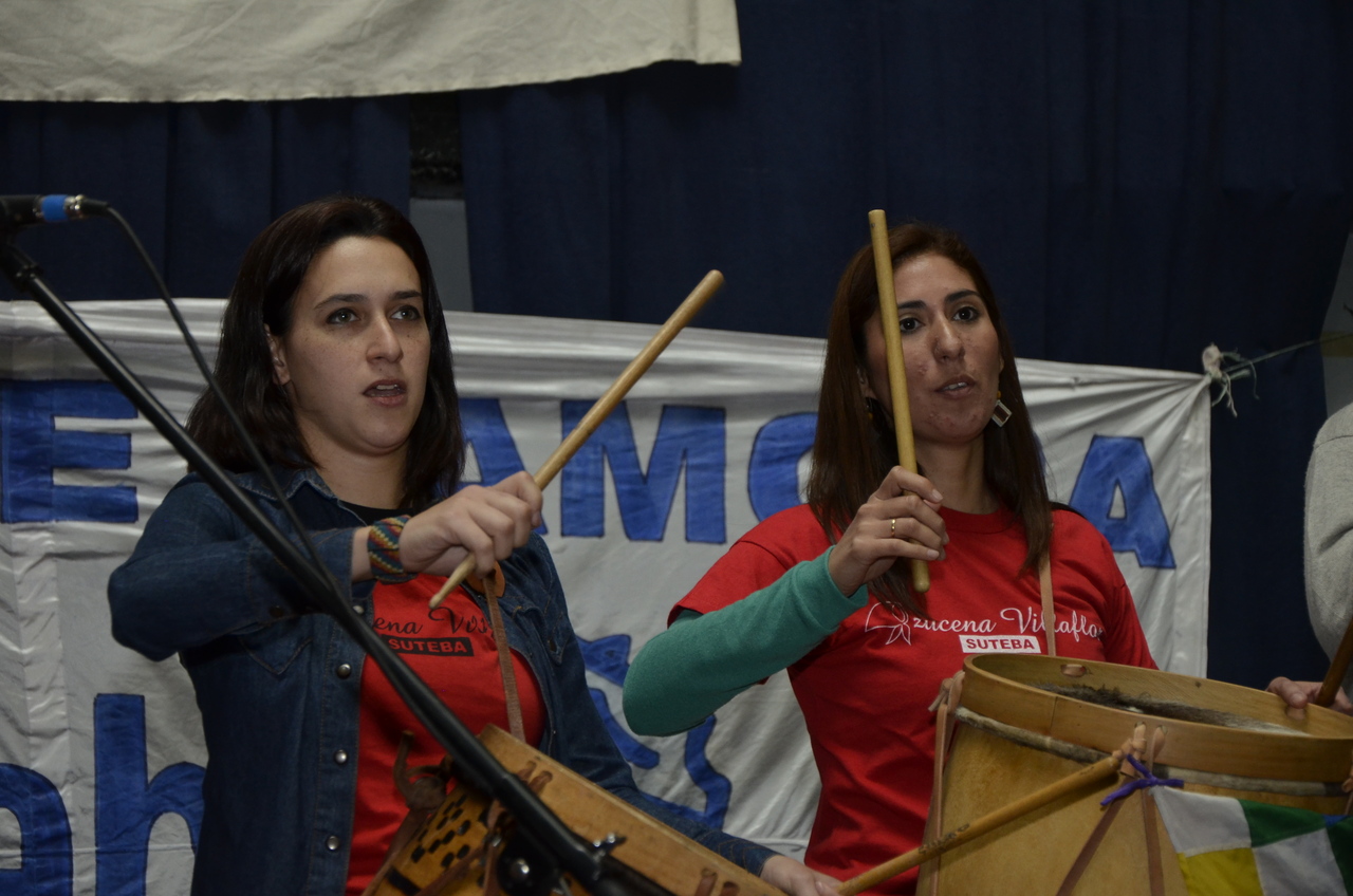 Una vez terminado el Himno, Adriana Grandoli, Secretaria General del SUTEBA Lomas de Zamora, dio continuidad al encuentro y expresó: "Es un orgullo y una alegría organizar este encuentro. Acá podemos dar testimonio de lo que hacemos a diario con los alumnos. Damos testimonio de nuestra historia, el SUTEBA sí defiende la Escuela Pública, no es un sindicato corporativista, no se piensa sólo en salarios sino también en las condiciones de trabajo para que todos los chicos tengan un espacio digno para aprender".
