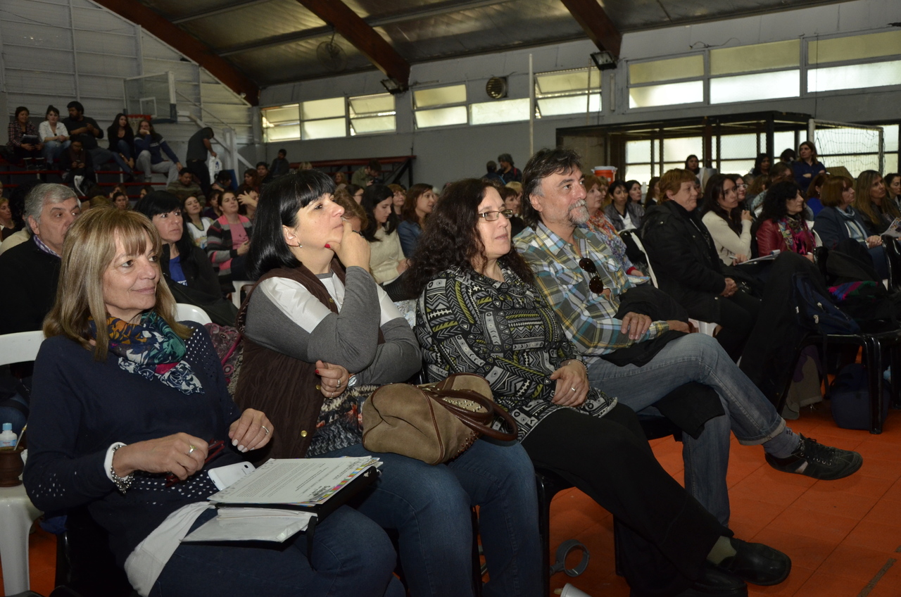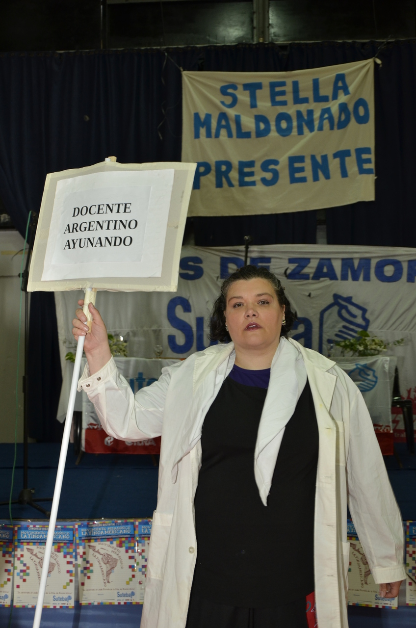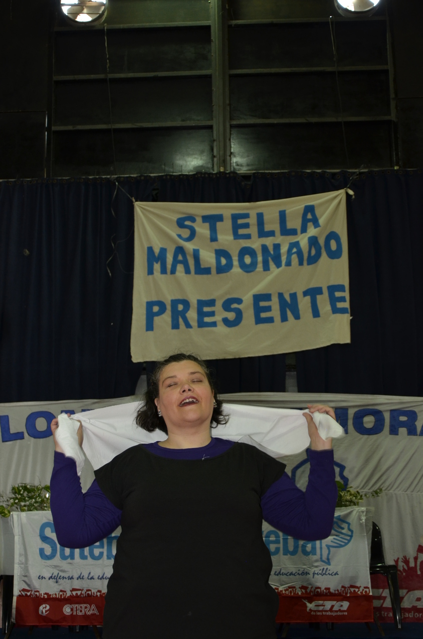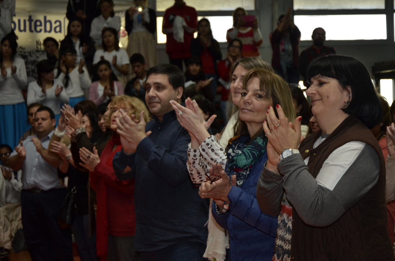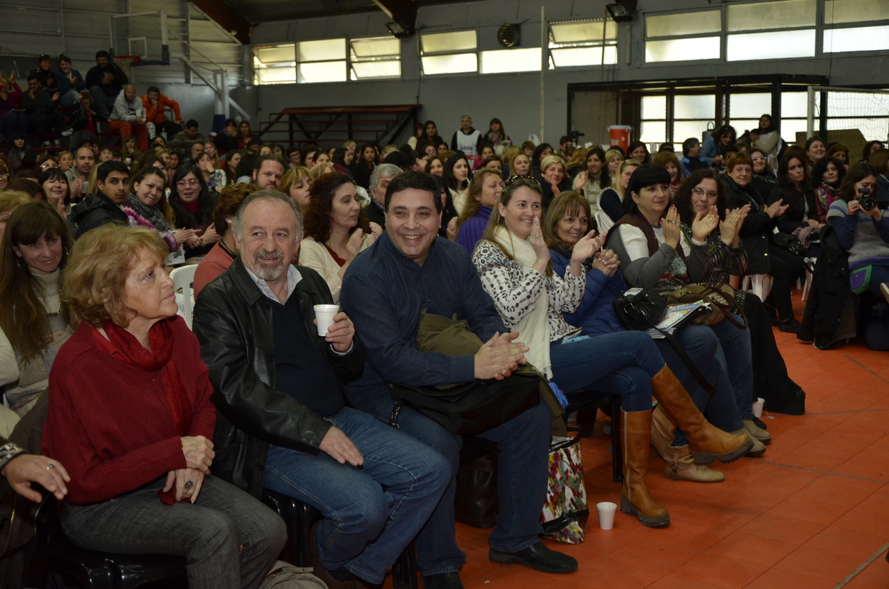 Una vez terminado el Himno, Adriana Grandoli, Secretaria General del SUTEBA Lomas de Zamora, dio continuidad al encuentro y expresó: "Es un orgullo y una alegría organizar este encuentro. Acá podemos dar testimonio de lo que hacemos a diario con los alumnos. Damos testimonio de nuestra historia, el SUTEBA sí defiende la Escuela Pública, no es un sindicato corporativista, no se piensa sólo en salarios sino también en las condiciones de trabajo para que todos los chicos tengan un espacio digno para aprender".