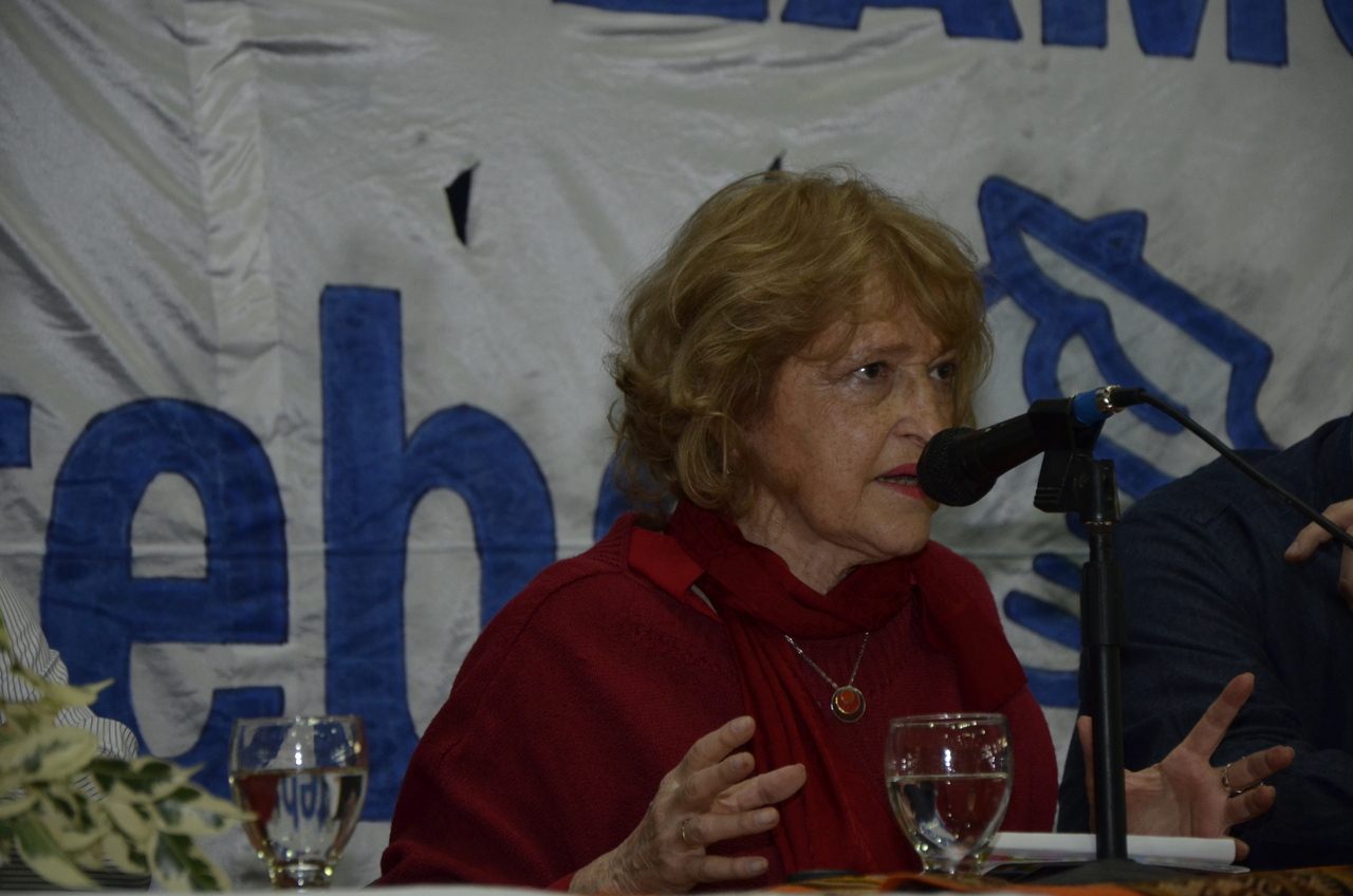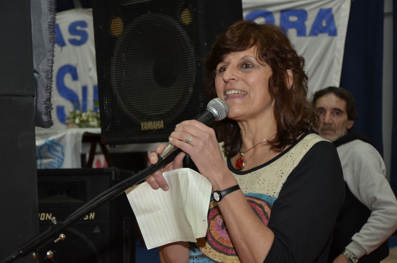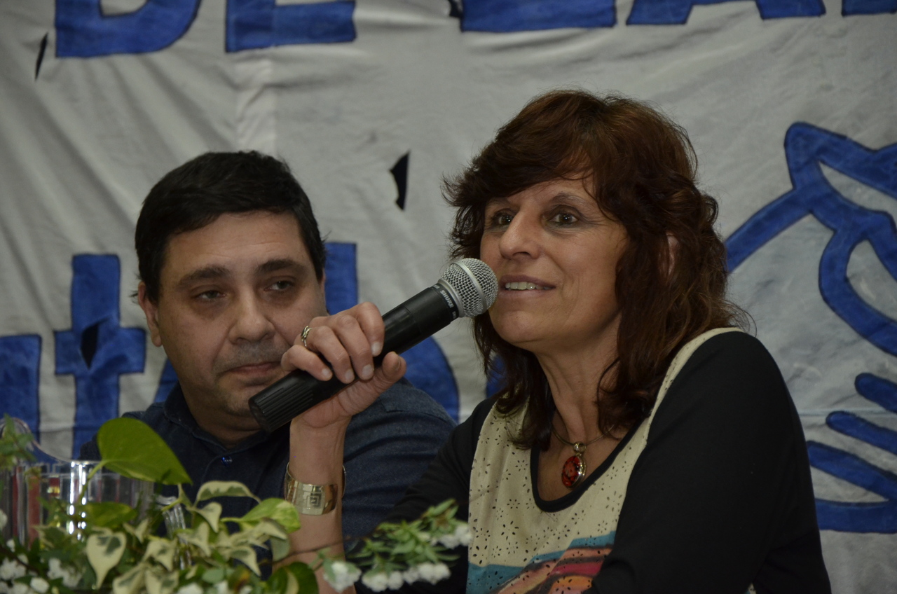 Adriana Puiggrós tomó la palabra y compartió sus opiniones a todos los compañeros presentes, quienes la escucharon con mucha atención y celebraron el momento compartido. La diputada definió los lineamientos políticos y remarcó que desde ciertos sectores de poder se busca desmerecer la educación, con el objetivo de generar un espacio para pocos y sin participación de los trabajadores.