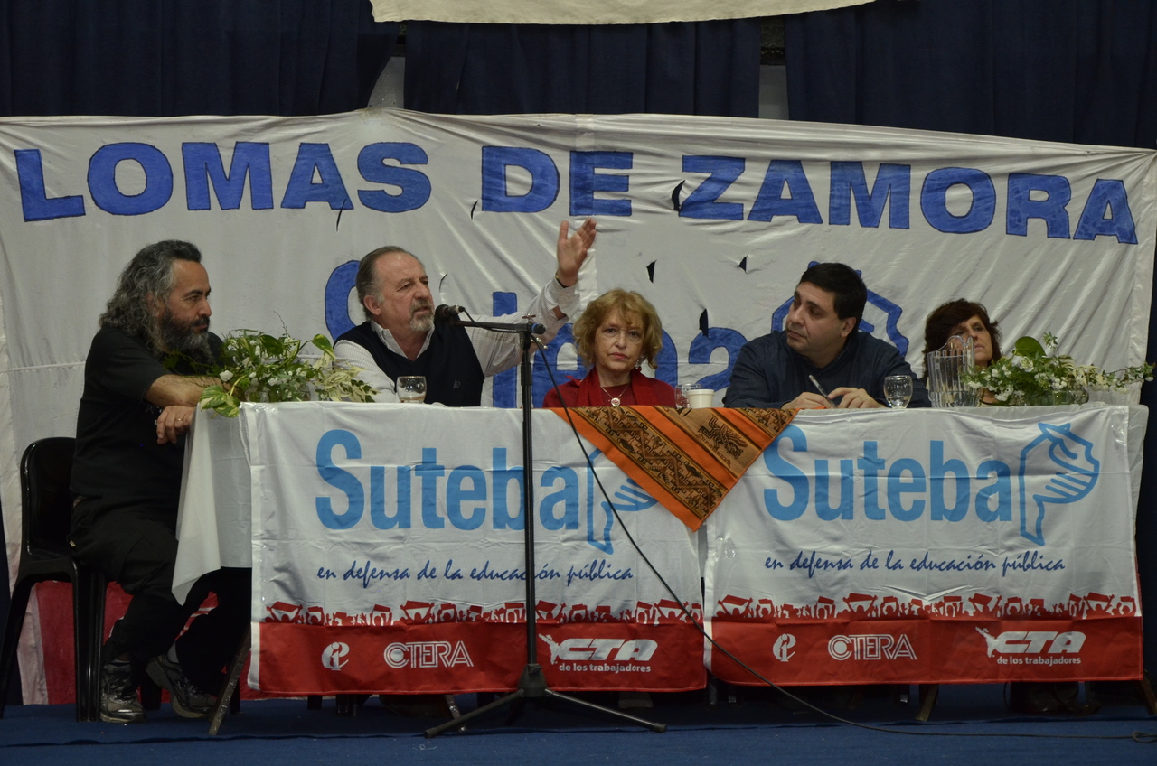 Hugo Yasky, en primera medida, recordó su trabajo en las escuelas de Lomas, además de establecer el marco político en el que se encuentra desarrollándose el Movimiento, destacando que los docentes no pueden enseñar siendo simples repetidores, sino que deben comprometerse con las prácticas pedagógicas que buscan romper con la tradición colonialista y que impulsan la liberación de Latinoamérica.