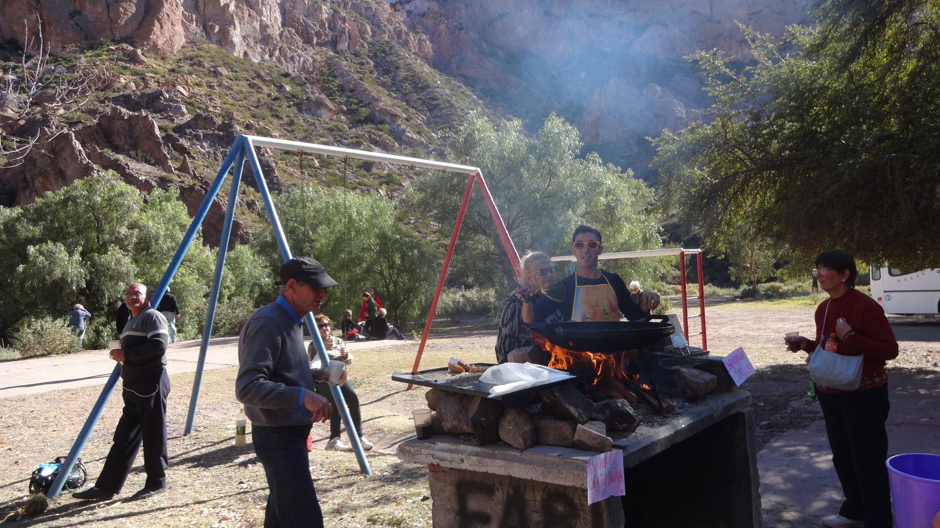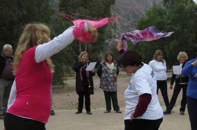 | El segundo grupo salió rumbo a San Rafael el 1 de junio desde distintos puntos de Buenos Aires con compañeros de Lomas de Zamora, Florencio Varela, Almirante Brown, Necochea, Morón, Ituzaingó, General Sarmiento, Hurlingham, Luján, General Rodríguez, Pilar y Junin. El grupo se integró rápidamente y tanto el viaje de ida como el de vuelta fueron de mucha diversión, con música y un personaje cómico en el momento de las viandas. El primer día en San Rafael realizaron el City Tour para conocer la ciudad, sus principales bodegas con las distintas etapas de elaboración del vino, sus procedimientos y el recorrido por las intalaciones de La Abeja y Suter. También recorrieron una chocolatería Por la noche, inauguraron el quincho-comedor del Hotel "Villa Maria Florales", con estilo muy rustico, con una Noche de Bienvenida. Los siguientes tres días realizaron excursiones para conocer el bello paisaje de Mendoza. Primero visitaron el "Parque los Reyunos", donde anduvieron en catamarán y algunos valientes se animaron a vivir la adrenalina de cruzar el lago en tirolesa; luego fueron al "Canon del Atuel", con un camino de ripio y paisaje verdaderamente imponentes. En ese marco hicieron una parada para comer unas ricas empanadas con vino, bailar folklore con una paisana que llego de sorpresa, y cantar unas zambas acapela gracias a la acústica natural del lugar. Finalmente, viajaron a "Las Leñas", pasando así por la popular Ruta 40 y teniendo como horizonte la magnifica Cordillera de los Andes. En el regreso fueron a conocer la "Laguna de la Nina Encanta" y su atrapante historia; un lugar escondido entre las montanas que les generó gran asombro. Durante las noches de cena en el hotel hubo una temática conjunta e hicieron un Pijama Party. También, otra de las noches, disfrutaron de un Show de Tap, regalo de su coordinadora Anita Bestel, quien interpretó "Singing in the Rain". El ultimo dia, luego del desayunos hicieron una clase de ritmos donde bailaron música disco y bachata, mientras que algunos caballeros se encargaban del Asado Popular para mas de 40 personas, y or la noche se realizó el Baile de Despedida con la realización de un show de todos los que habían tomado clases de baile. |
