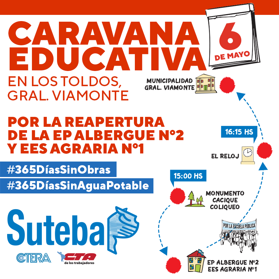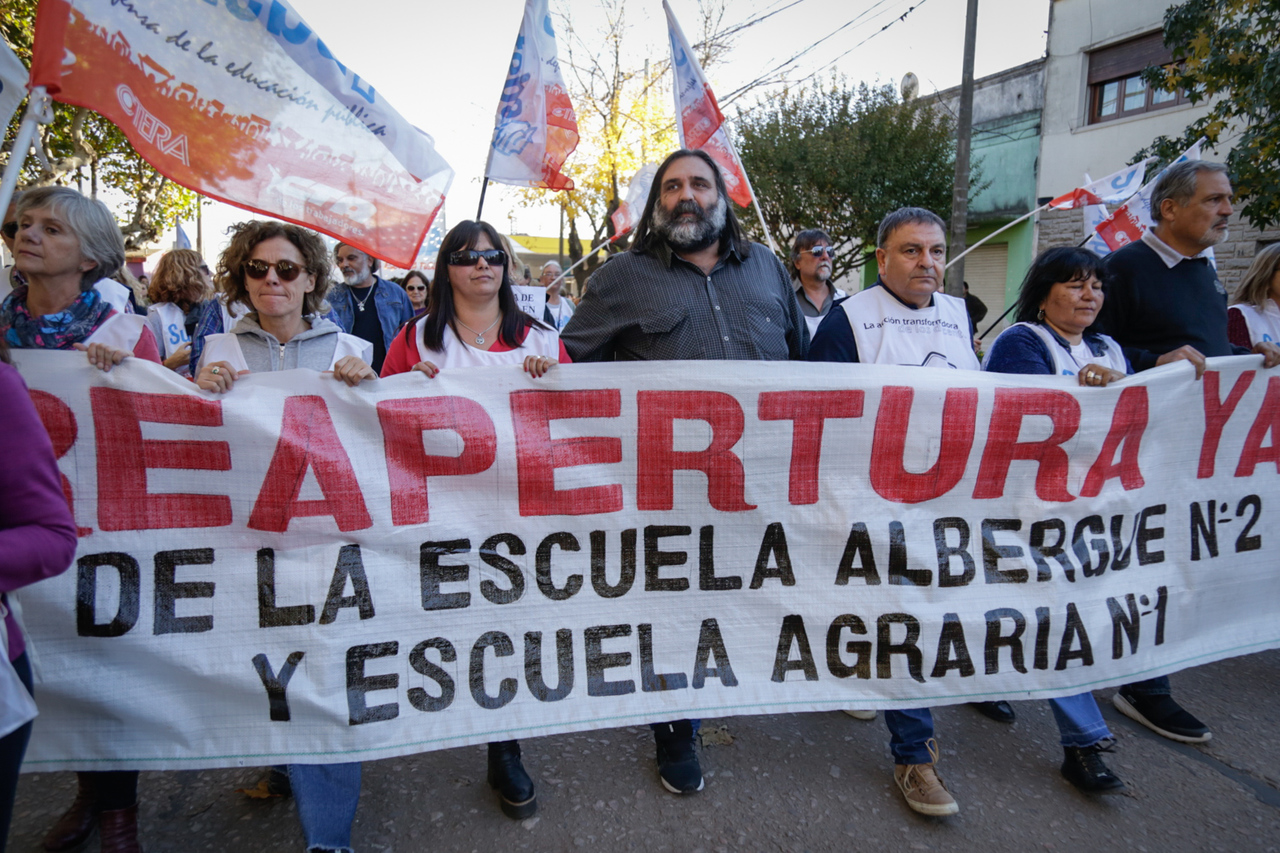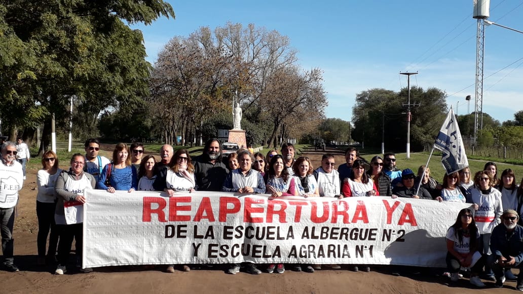Ante esta situación, el lunes 6 de mayo se realizó una masiva Caravana Educativa para exigir la inmediata reapertura de las Escuelas. Dicha Caravana se dirigió hacia la EP Albergue Nº 2 - EES Agraria Nº 1 (fundadas en la presidencia de Juan Domingo Perón) donde se realizó una parada y un recorrido de las instalaciones.