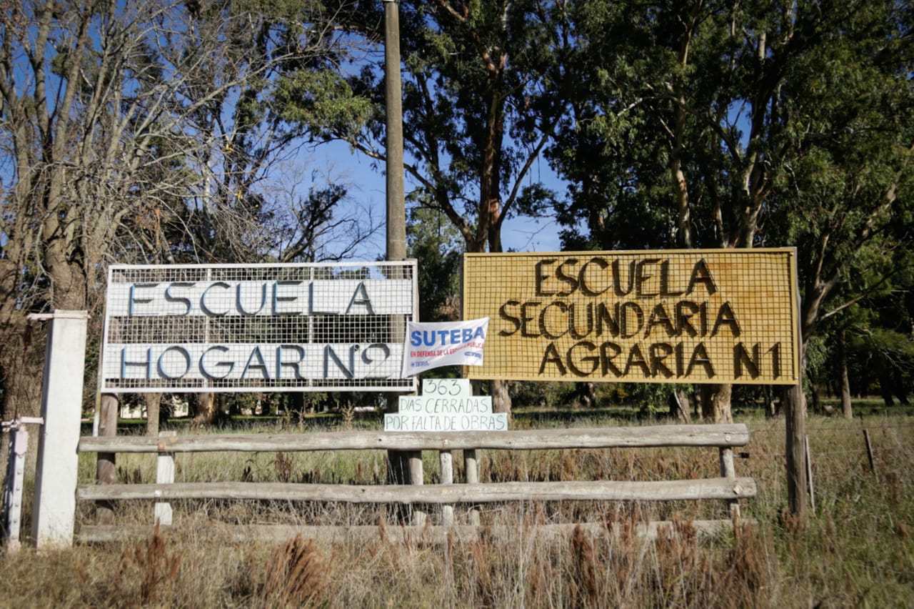 Más de 100 Alumnxs, que pertenecen a la Escuela Primaria Albergue Nº 2 y la Escuela de Educación Secundaria Agraria Nº 1 de Los Toldos, hace un año que no tienen clases en su establecimiento escolar, luego de ser desalojadxs por el Gobierno debido a la falta de agua potable. La suspensión de clases iba a ser solo de 15 días. Sin embargo, a 365 días de su cierre, aún no hay respuestas por parte de la Gobernadora María Eugenia Vidal y del Director General de Cultura y Educación bonaerense, Gabriel Sánchez Zinny. La desidia del Gobierno no puede resolver esta problemática.