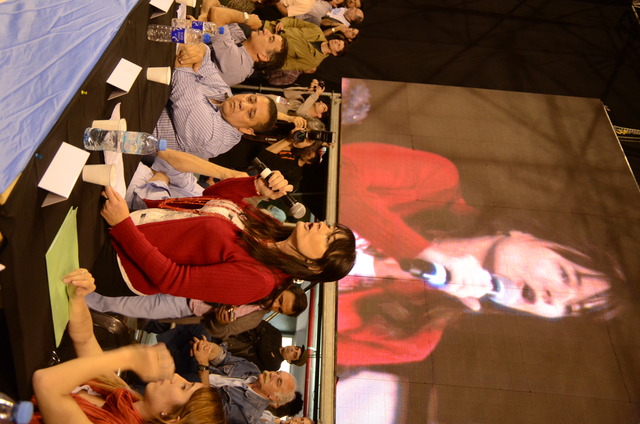 Luego, se emitió un videosaludo de la Presidenta, en donde expresó su agradecimiento por el apoyo. La Primer Mandataria señaló : "son los trabajadores y, precisamente, los hombres y mujeres que siempre hemos creído en el campo nacional, popular y democrático, los que mayores responsabilidades tenemos a la hora de sostener y defender los logros de este proyecto que comenzó en el año 2003".