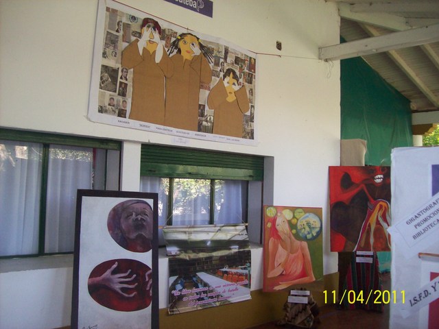 Algunos aprovecharon el momento para recorrer el salón. Éste poseía una galería que estaba ambientada con obras de arte de docentes de la región: esculturas, cuadros, dibujos, pinturas, etc. de todos los distritos de la Región 10. Además había para degustar varios productos de la zona –Gral. Las Heras- como quesos, salames, miel y muchos otros.