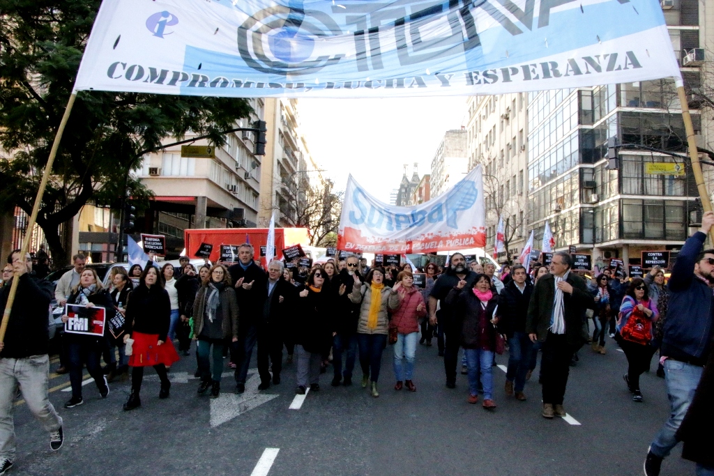 Cientos de Docentes se movilizaron hoy en apoyo a lxs compañerxs de Télam, expresando su solidaridad y exigiendo la reincorporación inmediata de todxs lxs despedidxs.