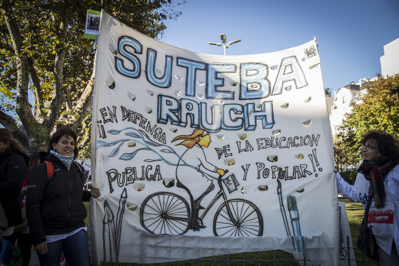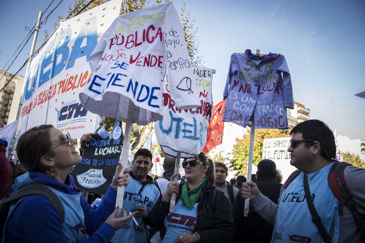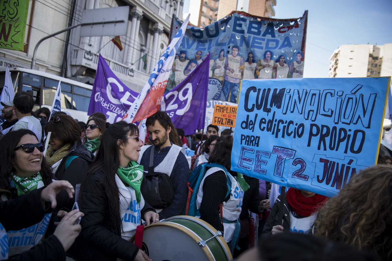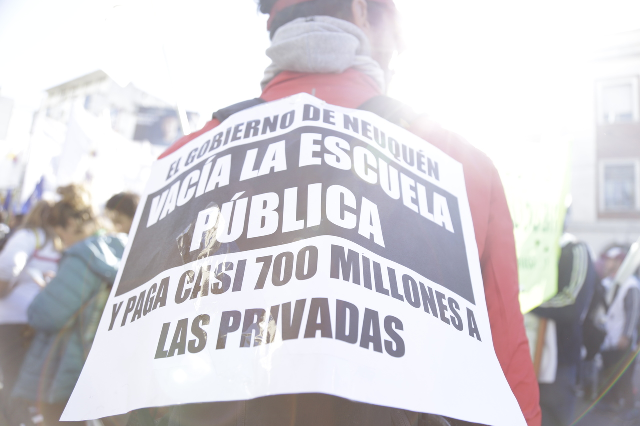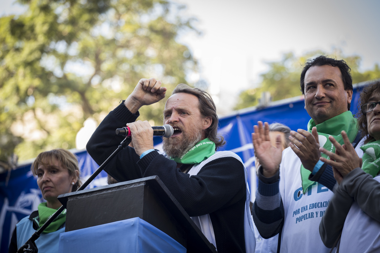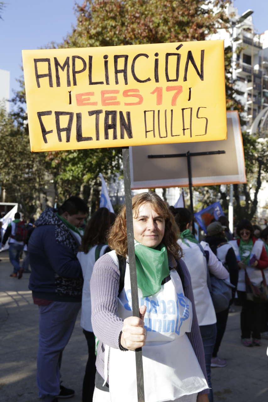 "Marchamos en nombre de nuestrxs 700 Maestrxs detenidxs y asesinadxs y de Carlos Fuentealba. Nos quieren volver a meter para adentro. Quieren que dejemos de pensar en los grandes destinos nacionales para que discutamos uno o dos temas. La discusión es sobre el modelo educativo, el modelo para esta Patria. Por eso gritamos Patria SI, Colonia NO. ¿Donde está Finnochiaro? ¿Dónde está la política educativa del gobierno? Nosotrxs queremos fortalecer la Educación Pública. Nosotrxs reivindicamos la Paritaria Nacional Docente y el Financiamiento Educativo. Fuimos, somos y seremos un Sindicato dispuesto a luchar en defensa de nuestros Derechos y a construir la unidad de clase para vencer este modelo", finalizó Alesso.