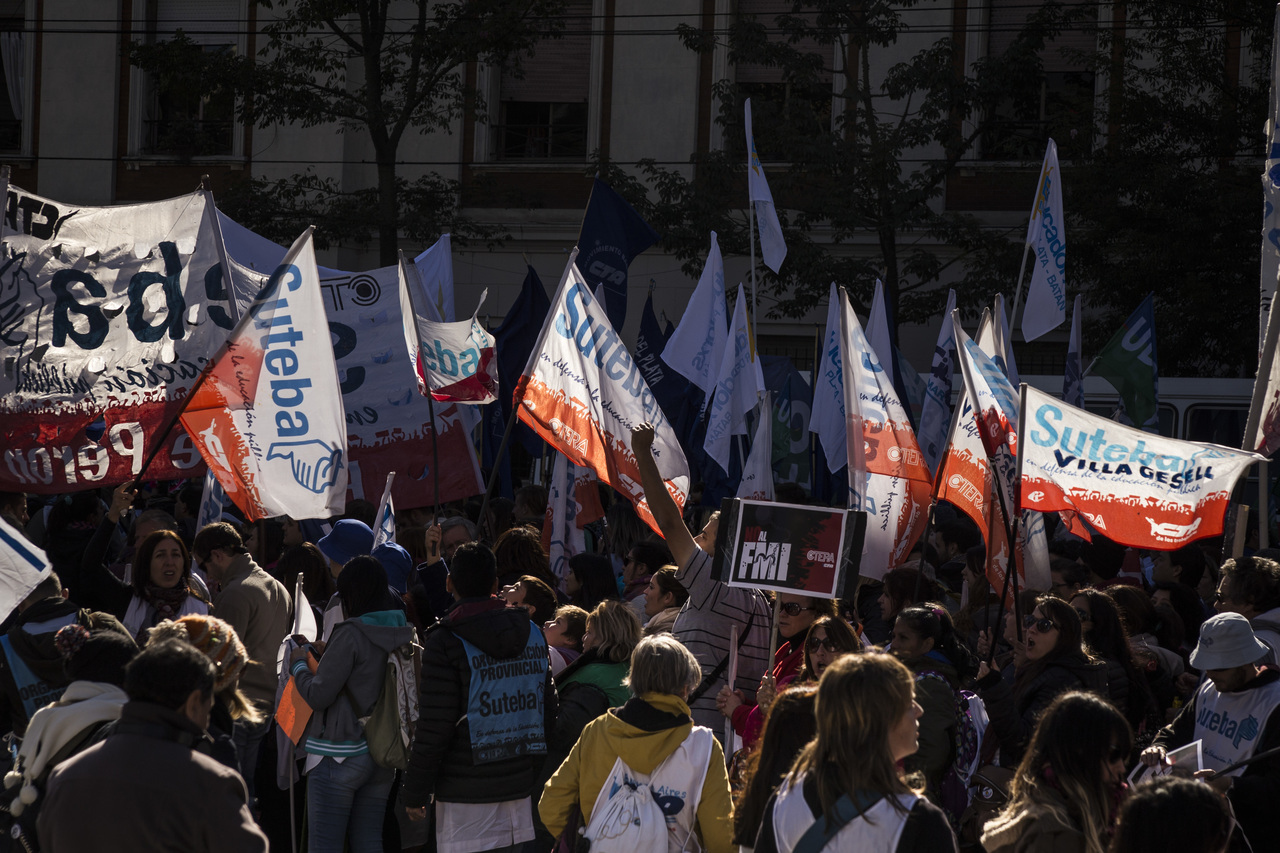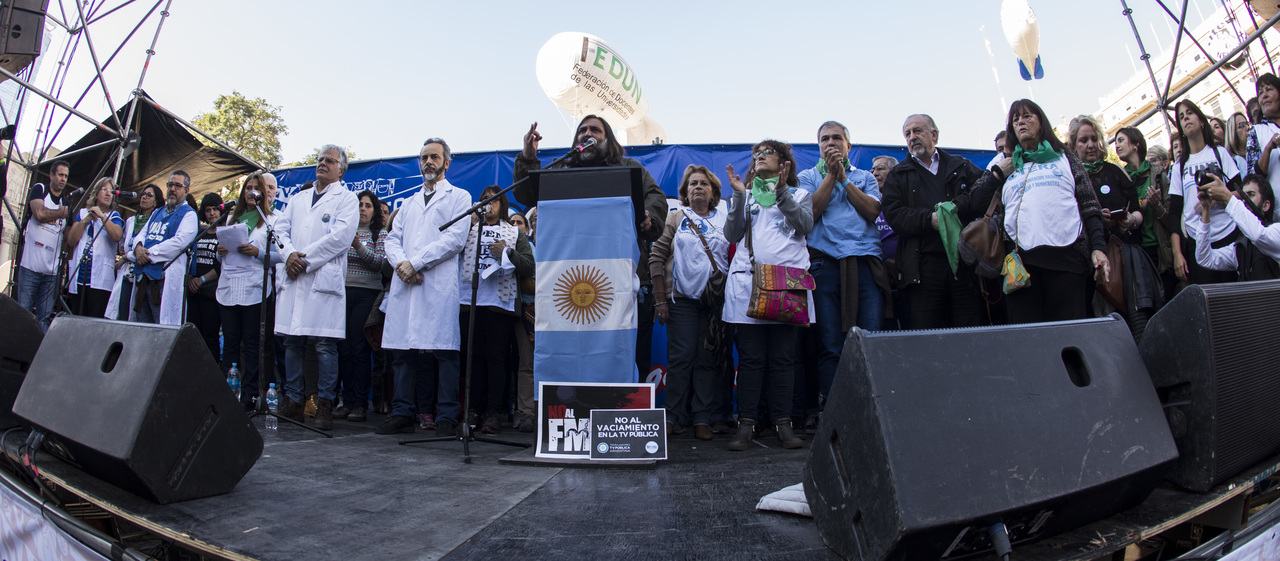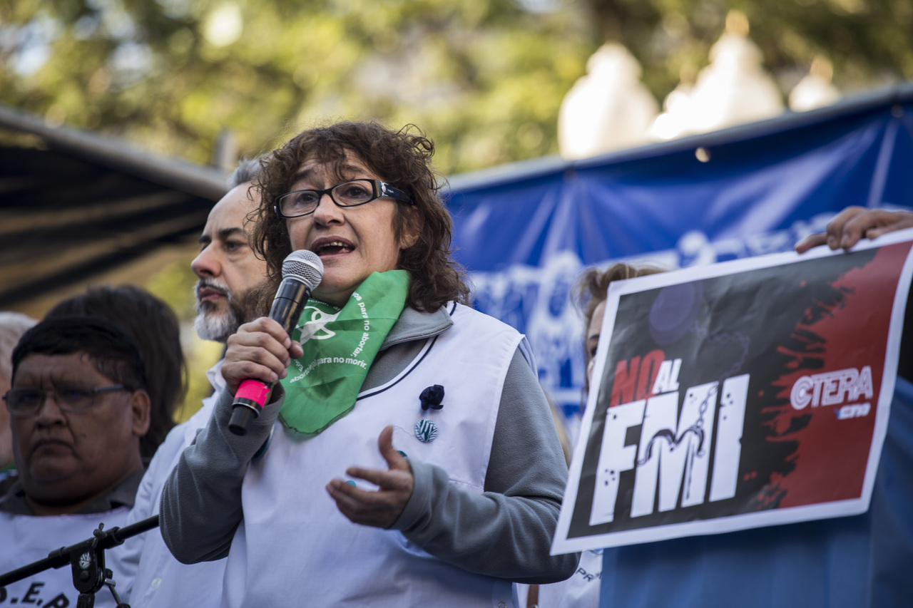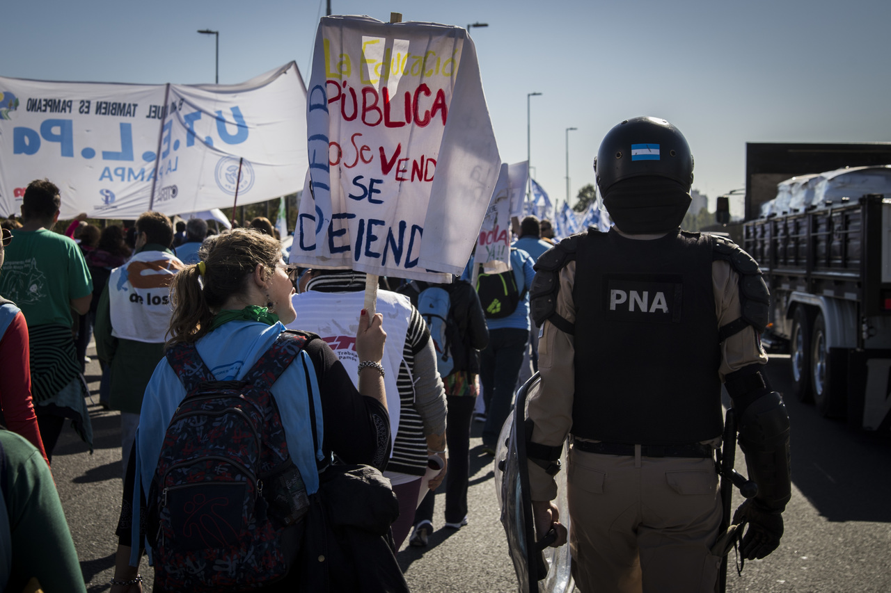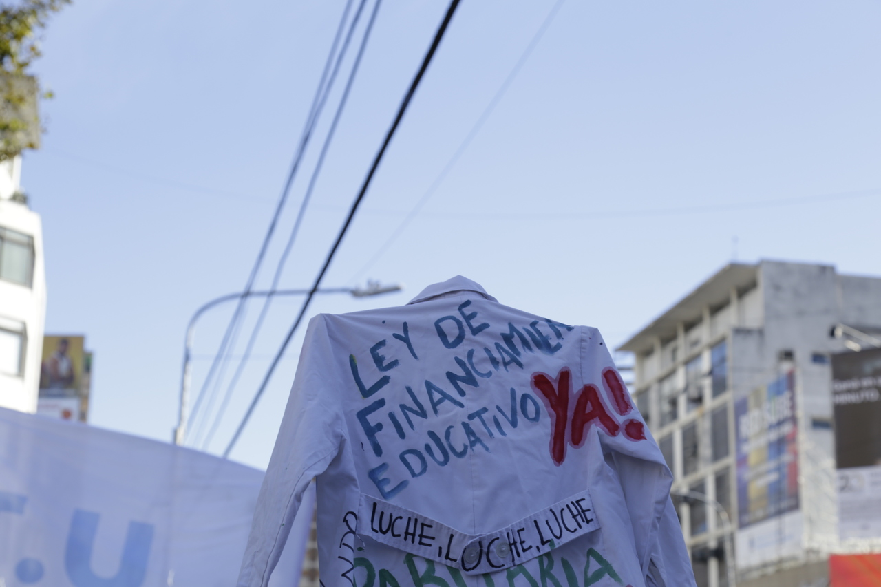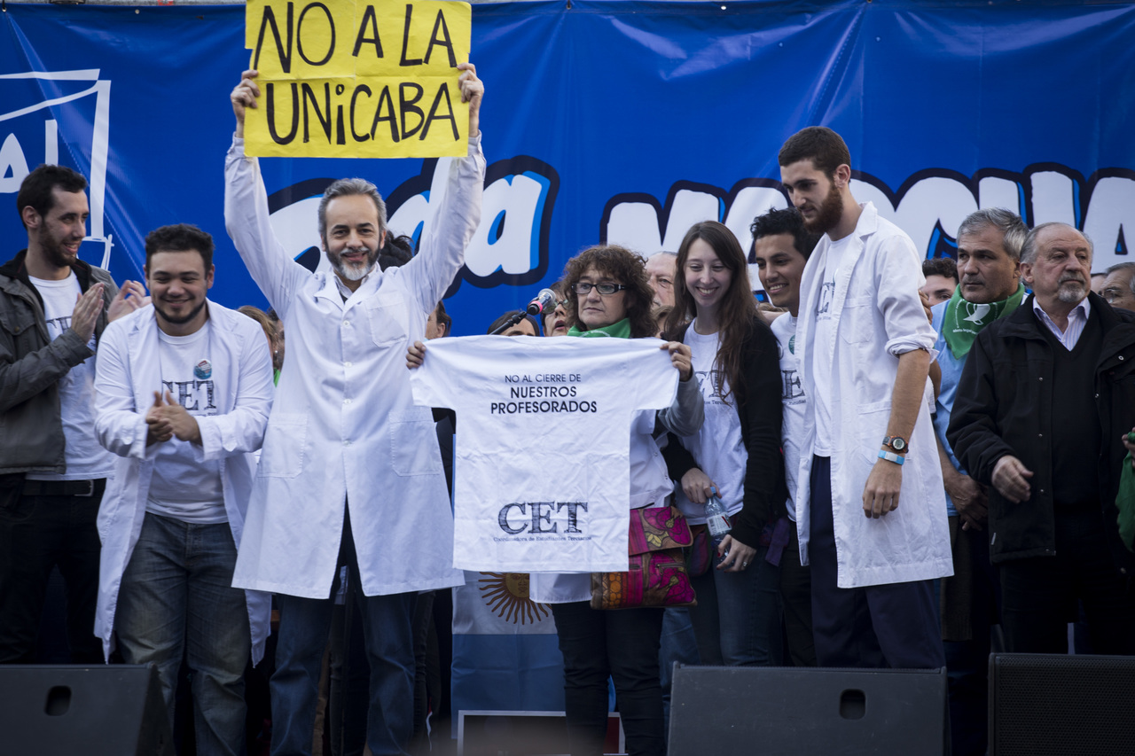 "Marchamos en nombre de nuestrxs 700 Maestrxs detenidxs y asesinadxs y de Carlos Fuentealba. Nos quieren volver a meter para adentro. Quieren que dejemos de pensar en los grandes destinos nacionales para que discutamos uno o dos temas. La discusión es sobre el modelo educativo, el modelo para esta Patria. Por eso gritamos Patria SI, Colonia NO. ¿Donde está Finnochiaro? ¿Dónde está la política educativa del gobierno? Nosotrxs queremos fortalecer la Educación Pública. Nosotrxs reivindicamos la Paritaria Nacional Docente y el Financiamiento Educativo. Fuimos, somos y seremos un Sindicato dispuesto a luchar en defensa de nuestros Derechos y a construir la unidad de clase para vencer este modelo", finalizó Alesso.