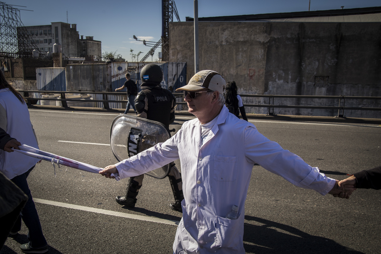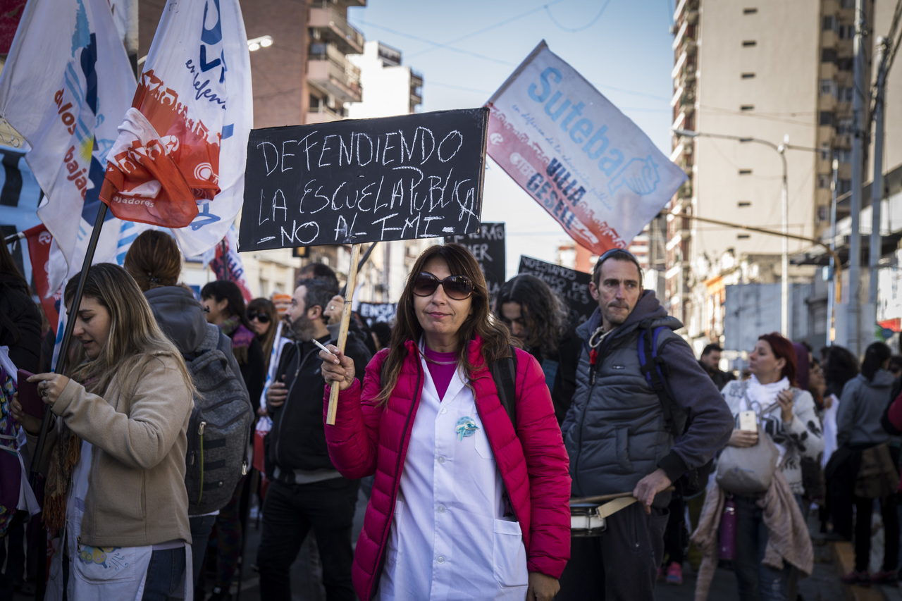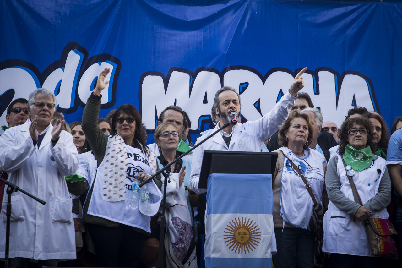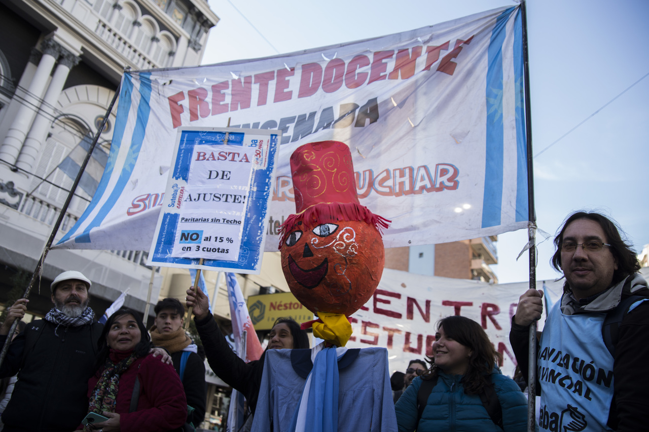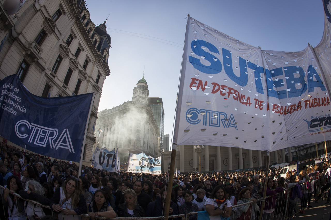 "Marchamos en nombre de nuestrxs 700 Maestrxs detenidxs y asesinadxs y de Carlos Fuentealba. Nos quieren volver a meter para adentro. Quieren que dejemos de pensar en los grandes destinos nacionales para que discutamos uno o dos temas. La discusión es sobre el modelo educativo, el modelo para esta Patria. Por eso gritamos Patria SI, Colonia NO. ¿Donde está Finnochiaro? ¿Dónde está la política educativa del gobierno? Nosotrxs queremos fortalecer la Educación Pública. Nosotrxs reivindicamos la Paritaria Nacional Docente y el Financiamiento Educativo. Fuimos, somos y seremos un Sindicato dispuesto a luchar en defensa de nuestros Derechos y a construir la unidad de clase para vencer este modelo", finalizó Alesso.
