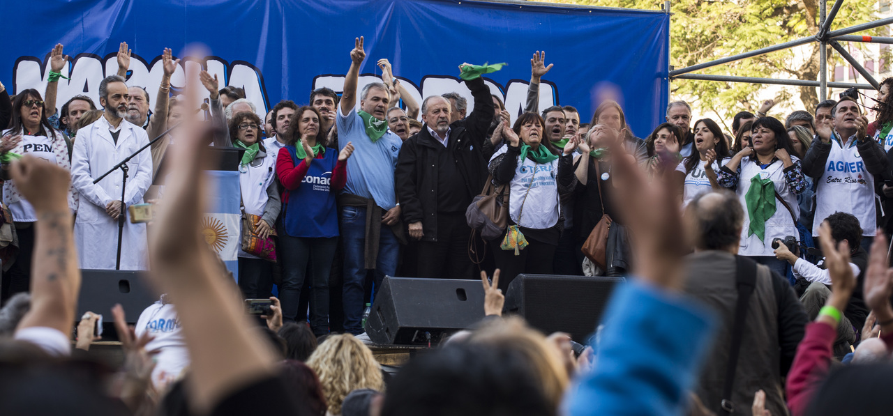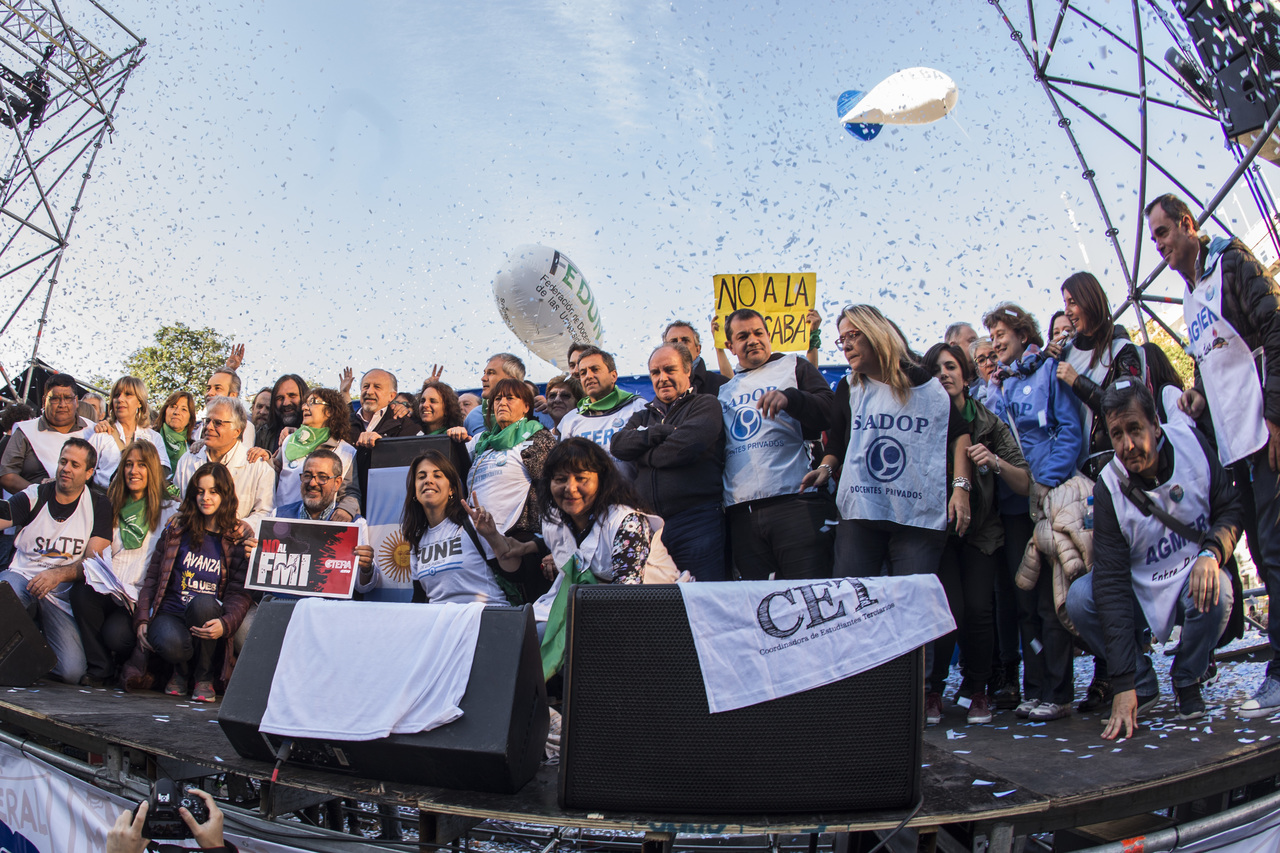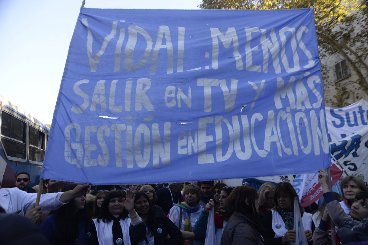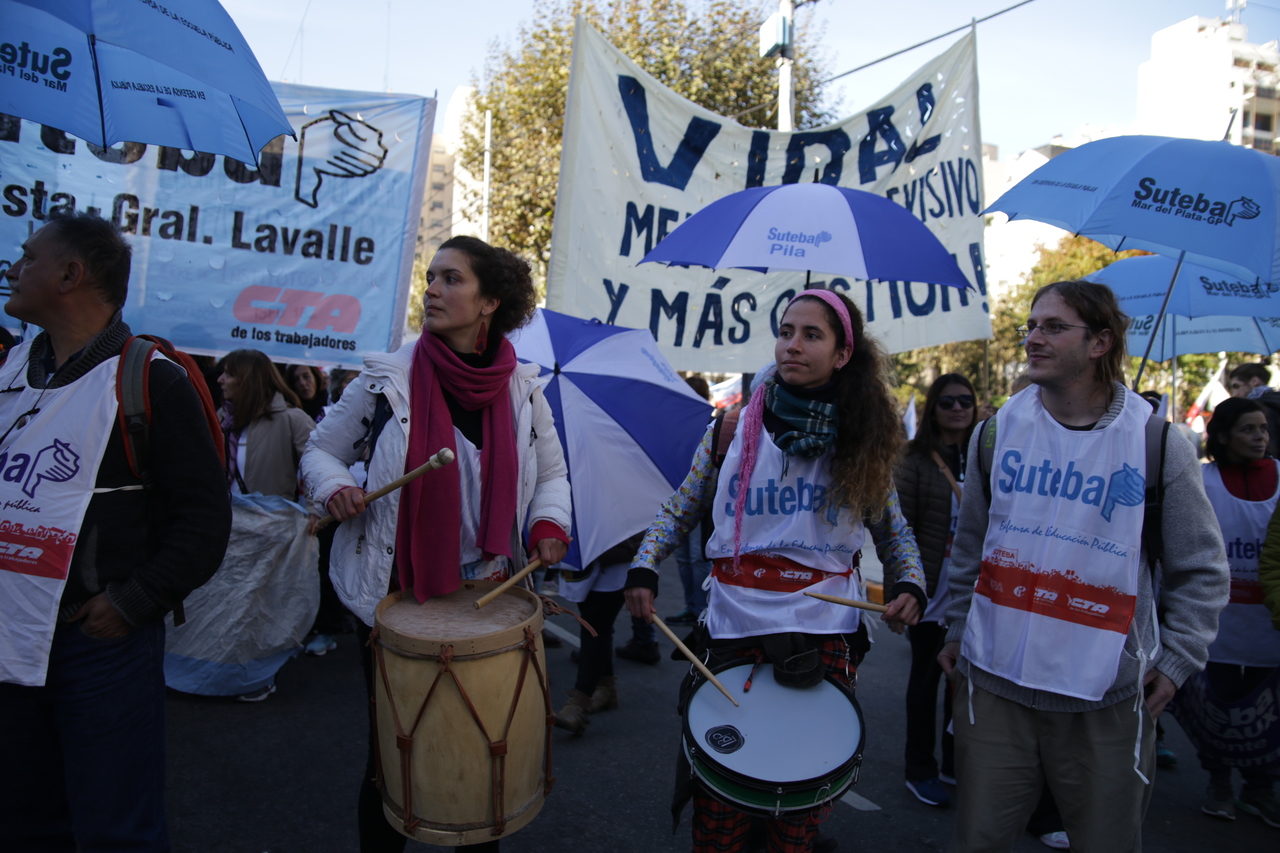 Nuestro Secretario General y Adjunto de CTERA, Roberto Baradel, expresó en el escenario: "Nos solidarizamos con lxs Trabajadorxs del Subte, de Cresta Roja, de Astilleros Río Santiago y con todxs aqullxs que están en conflicto. A la Gobernadora Vidal, le pedimos menos sets televisivos y mas gestión, más Escuelas, más hospitales, más conurbano e interior, más provincia de Buenos Aires. Si realmente quiere resolver el conflicto, convoque al FUDB y ofrezca un salario digno. Seguiremos luchando por la unidad de la clase trabajadora para realizar el Paro General contra el FMI y contra las políticas de ajuste".