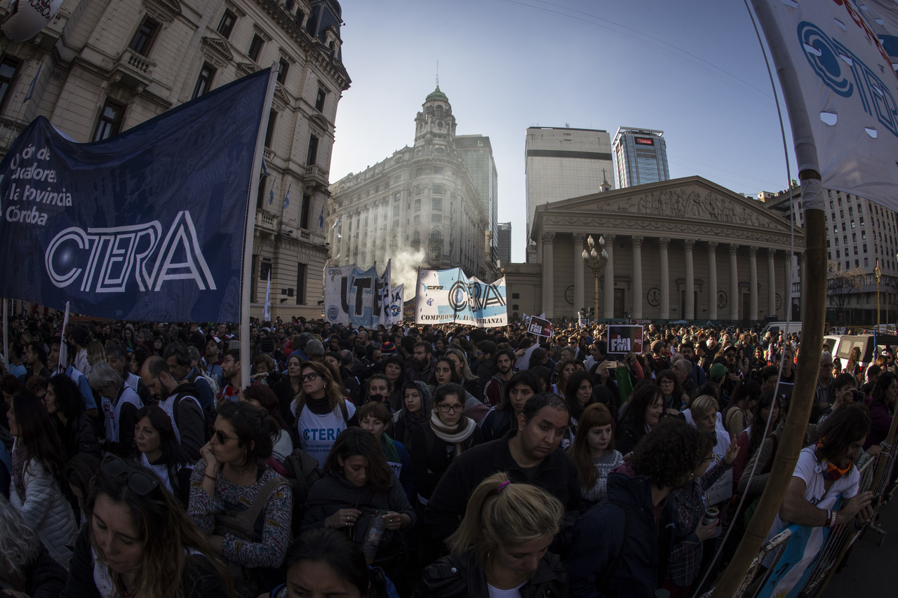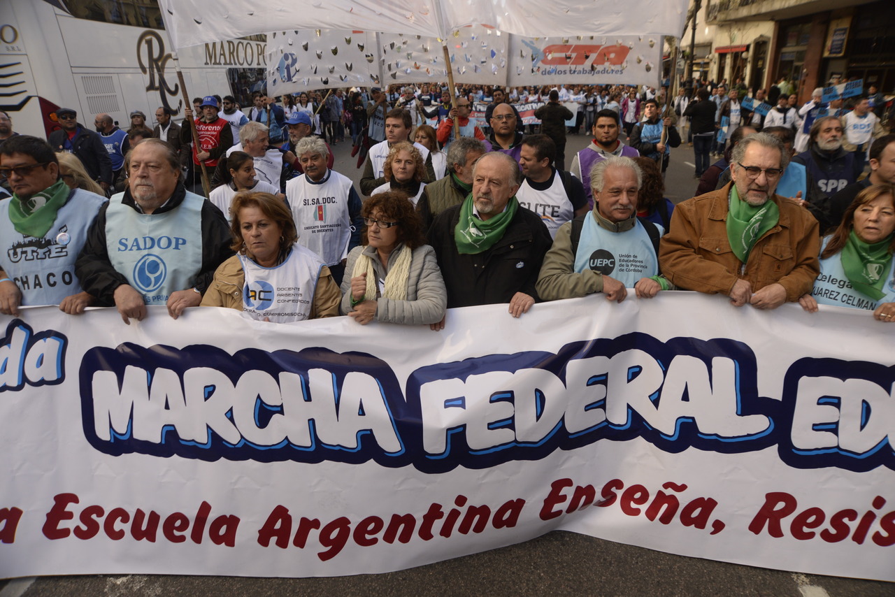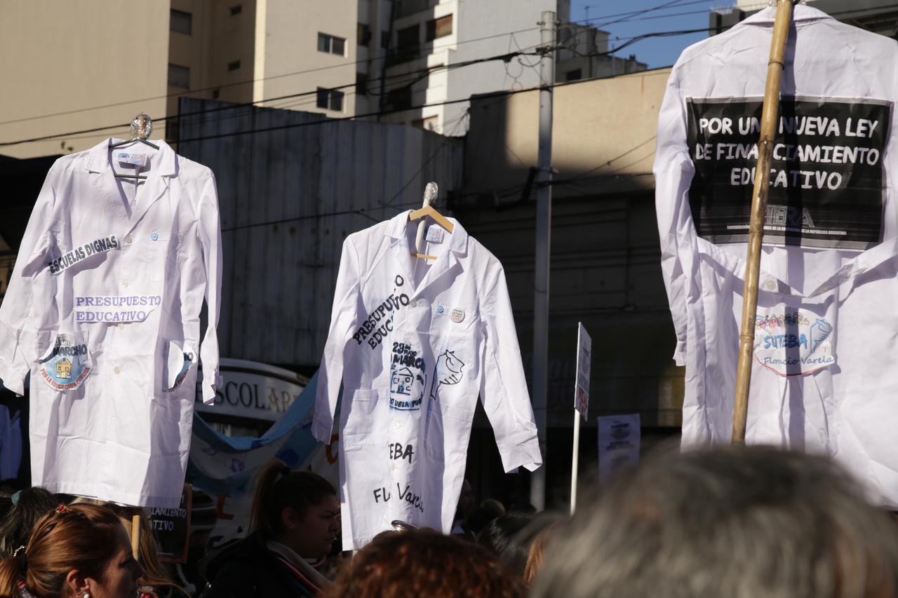 Convocadas por CTERA, DAC y SADOP, cinco columnas de diferentes partes del país (NOA, NEA, CUYO, SUR ESTE y SUR OESTE) vibraron estos dos últimos días en Buenos Aires e inundaron la patria de guardapolvos blancos para pedir Paritaria Nacional Docente, la resolución de los conflictos provinciales, una nueva Ley de Financiamiento Educativo, en defensa de los Institutos Superiores, contra los techos salariales y contra el acuerdo con el FMI.