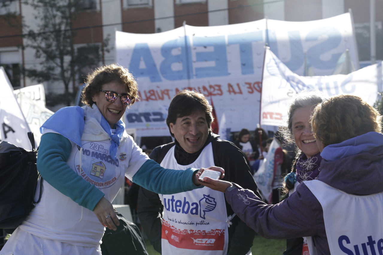 Por su parte, la Secretaria General de CTERA, Sonia Alesso, manifestó: "Debemos abrazarnos entre nosotrxs por construir esta segunda Marcha Federal Educativa, que recorrió todo el país diciendo basta de ajuste y de hambre. Es un día de gran emoción, conmemoramos 30 años de la Marcha Blanca que llenó, como ésta, las calles de guardapolvos blancos, para exigir Paritaria Nacional Docente y Financiamiento Educativo".
