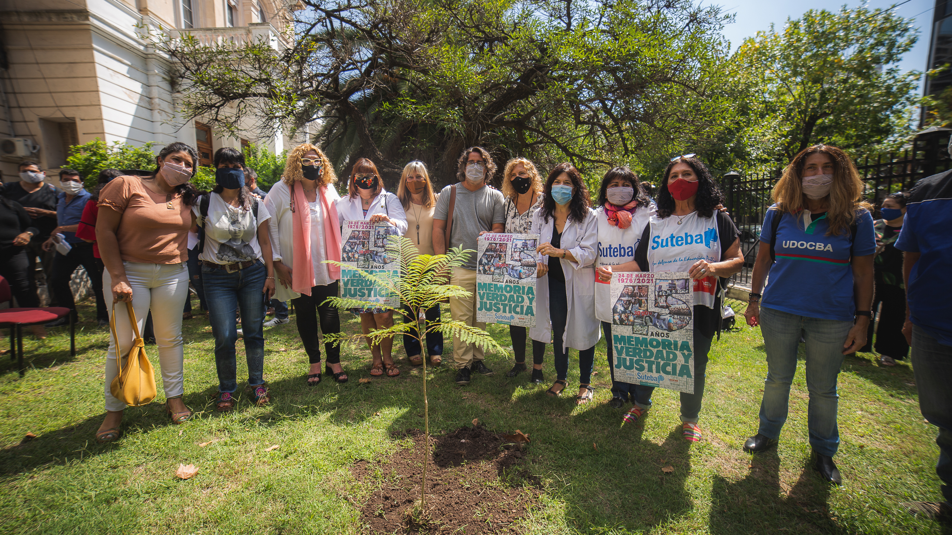 En el marco de la campaña #PlantamosMemoria, convocada por Organismos de Derechos Humanos a 45 años del golpe genocida, desde el SUTEBA, junto a otras Organizaciones Sindicales, nos encontramos hoy en la Dirección General de Cultura y Educación y plantamos un árbol en Memoria de nuestrxs 30.000 compañerxs detenidxs desaparecidxs.