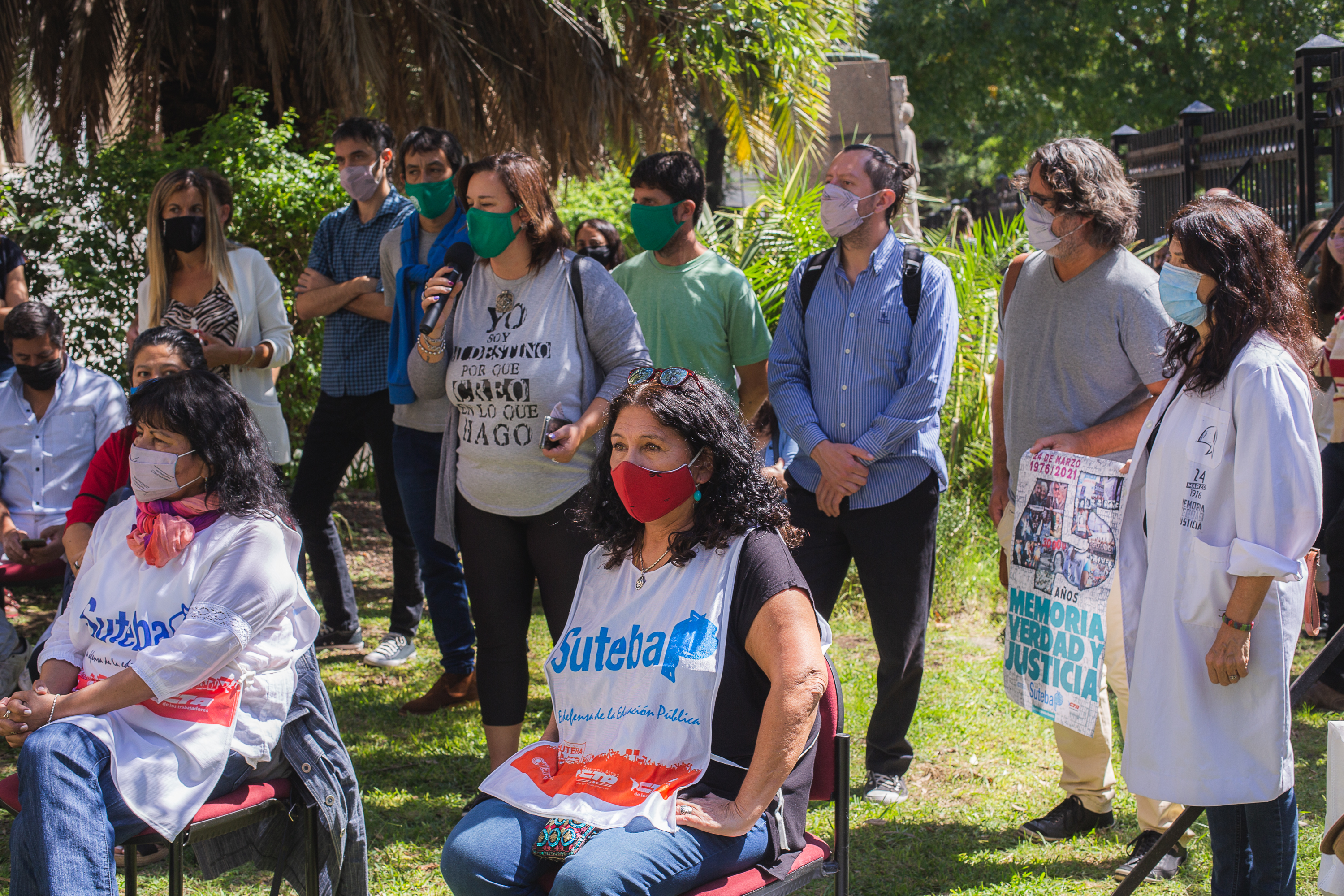 Durante la jornada, Almazán expresó: "En esta sede tan importante para lxs Trabajadorxs de la Educación, hoy estamos plantando Memoria, Verdad y Justicia. Plantamos un árbol en el marco de la campaña de los Organismos de DDHH; plantamos esa Memoria que tiene profundas raíces en la Educación Pública y que se sostiene con el compromiso de todxs lxs Trabajadorxs de la Educación bonaerenses. Nuestrxs 30.000 compañerxs detenidxs desaparecidxs están presentes".