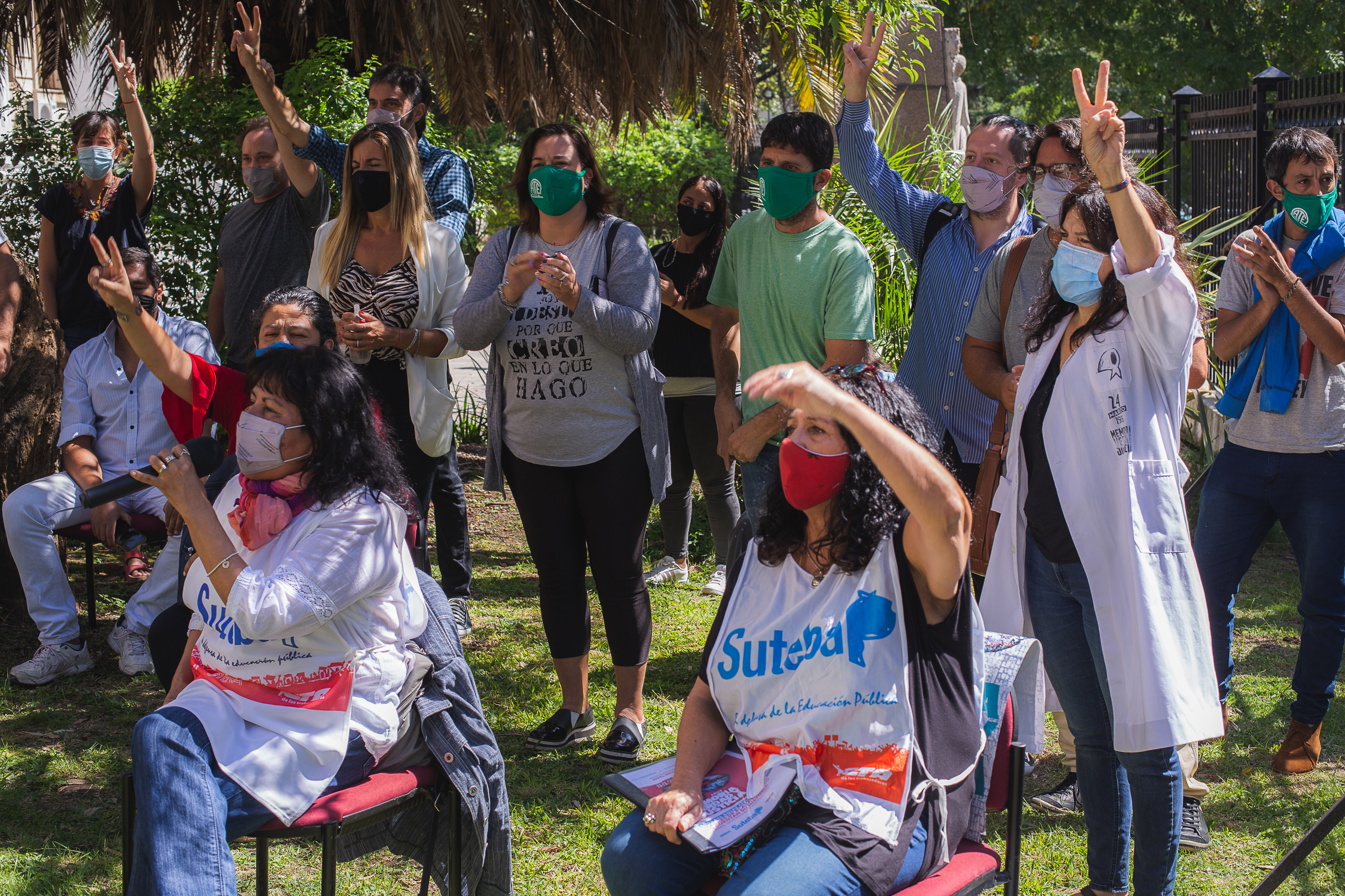 Desde nuestra Organización Sindical, además de la actividad de hoy, convocamos a cada Escuela a plantar un árbol o una planta en macetas, canteros y patios, escribiendo en ellos mensajes y frases. Así lo estamos haciendo en nuestras sedes sindicales y Centros de Salud. Se suman también diversas acciones realizadas en múltiples distritos de la Provincia, como pañuelazos y caravanas; entre otras.