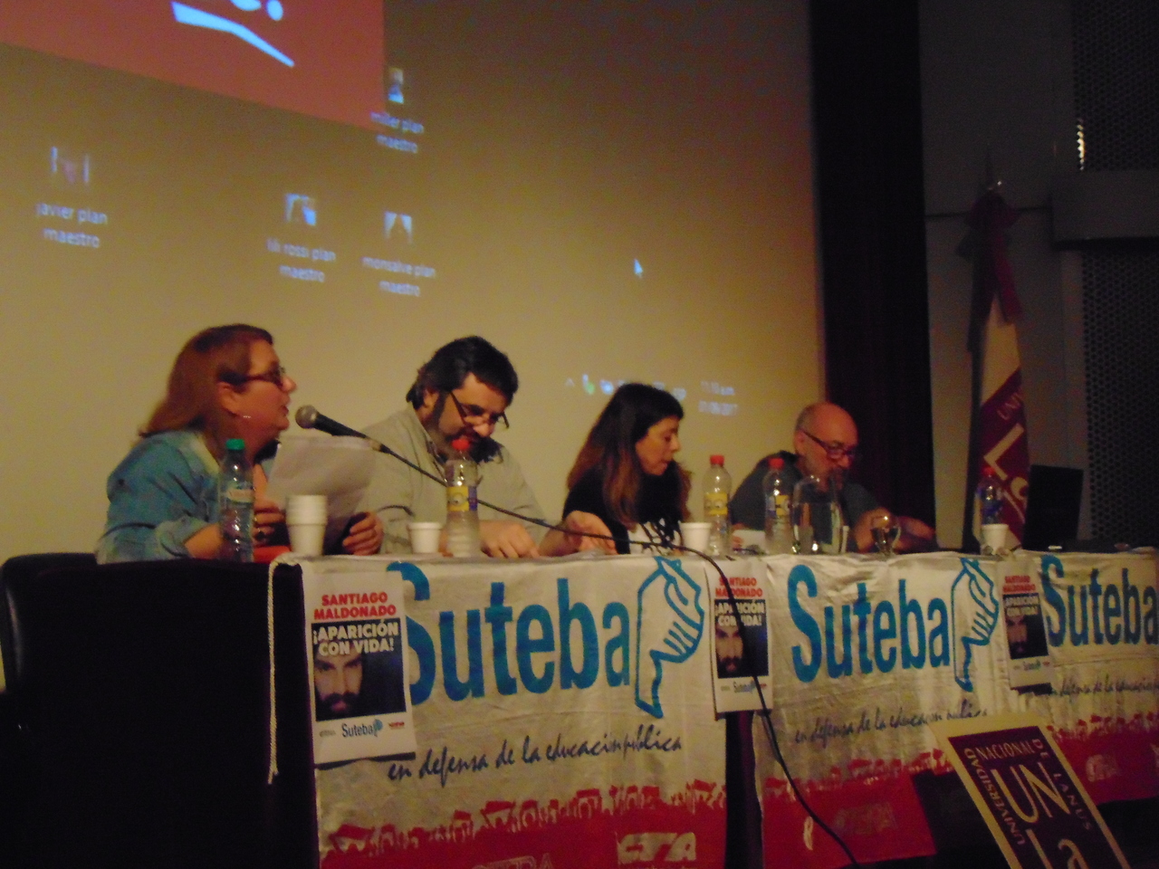 Por la mañana, distintos panelistas, entre los que se encontraban Miguel Duhalde, Secretario de Educación de CTERA, y Gustavo Galli, Docente Universitario e integrante del equipo de Educación y Cultura del SUTEBA, abarcaron temas como: las tendencias privatizadoras en Educación, el avance del mercado en el discurso y la formación docente y la configuración de la Educación según las demandas de los grupos económicos.