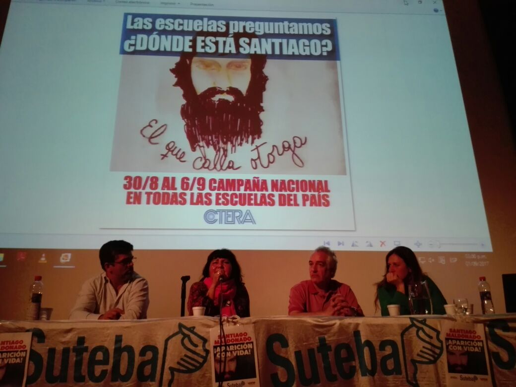 Asimismo, se exigió la aparición con vida de Santiago Maldonado, acompañando las manifestaciones en todo el país a un mes de su desaparición forzada.