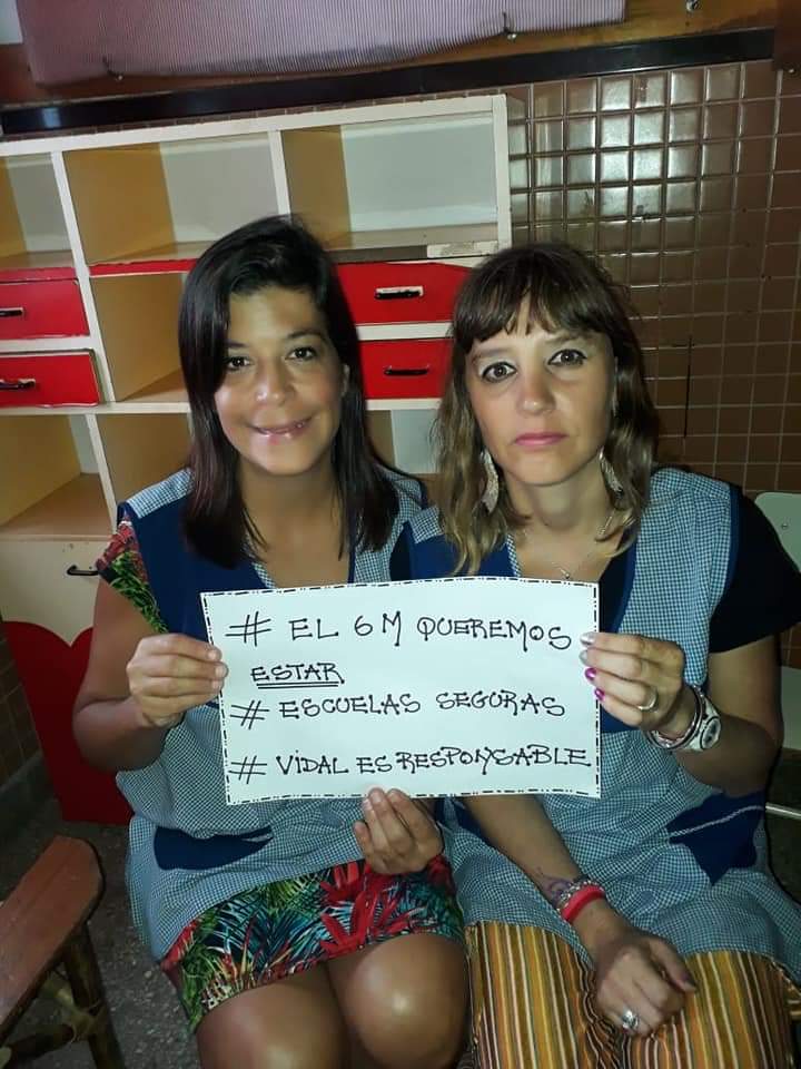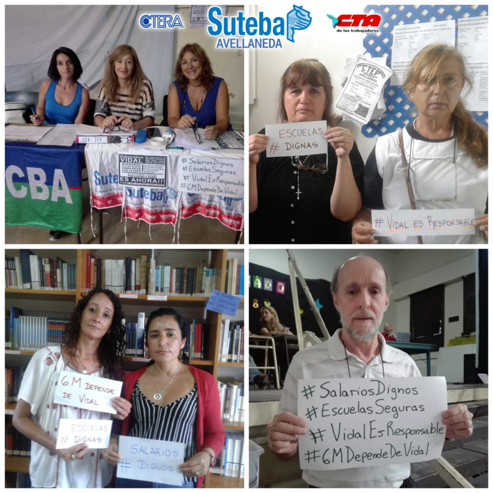 Hoy, todxs lxs Docentes de la provincia de Buenos Aires volvieron a sus Escuelas con un mensaje muy claro que la Gobernadora debe escuchar para la Paritaria del miércoles: Salarios dignos, Escuelas seguras y JUSTICIA POR SANDRA Y RUBÉN.