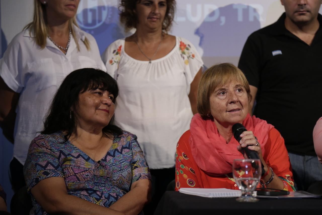 Luego de la intervención de Almazán, las organizaciones acercaron su solidaridad al reclamo por la Paritaria Nacional Docente y al pedido de justicia por Gabriela, Docente de Lomas de Zamora que falleció luego de que IOMA le negara sus medicamentos oncológicos.