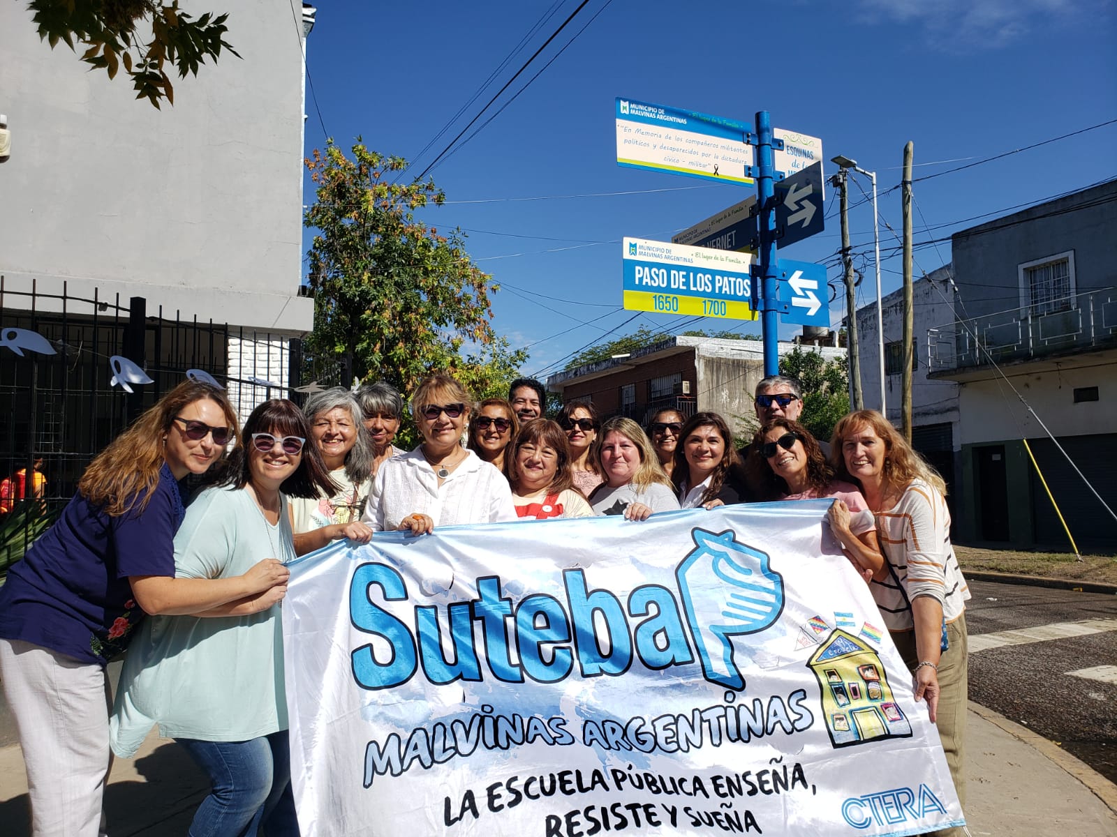 El 28 se señaló la esquina de la Escuela donde fuera secuestrada Susana Pertierra, Maestra detenida desaparecida, Directora de la EP N° 20 (ex 54) e integrante de la Junta Ejecutiva de la CTERA.