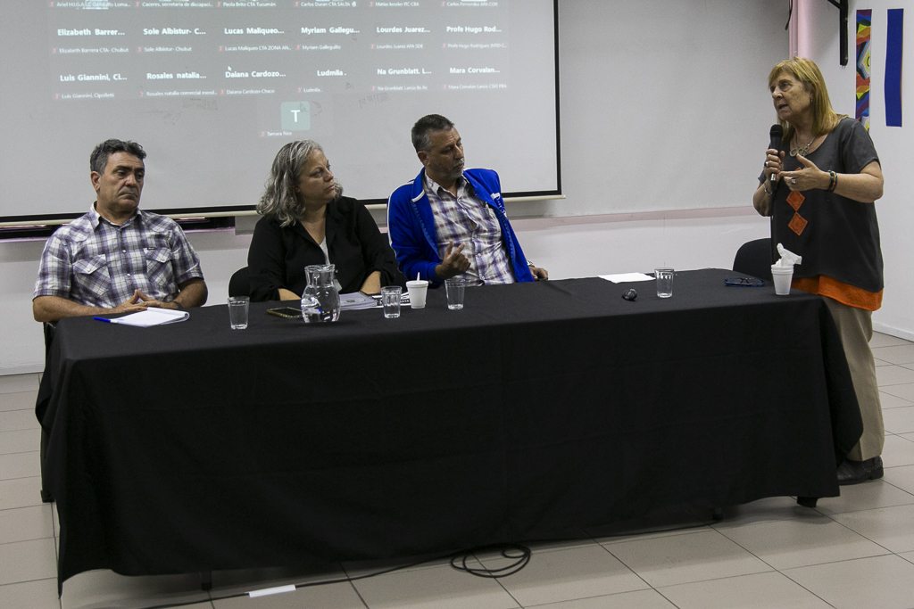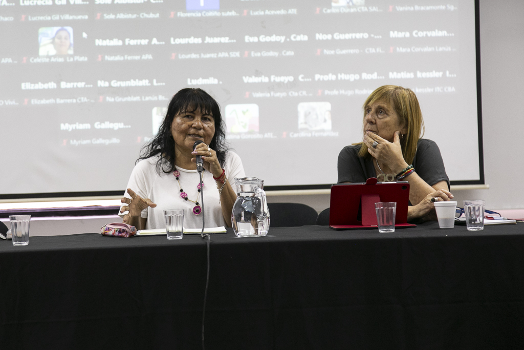La apertura de esta tercera jornada de la actividad estuvo a cargo de Silvia Almazán, Secretaria General Adjunta del SUTEBA, y Lilian Capone, Subsecretaria de Condiciones, Medioambiente de Trabajo y Salud Laboral de la CTA-T.